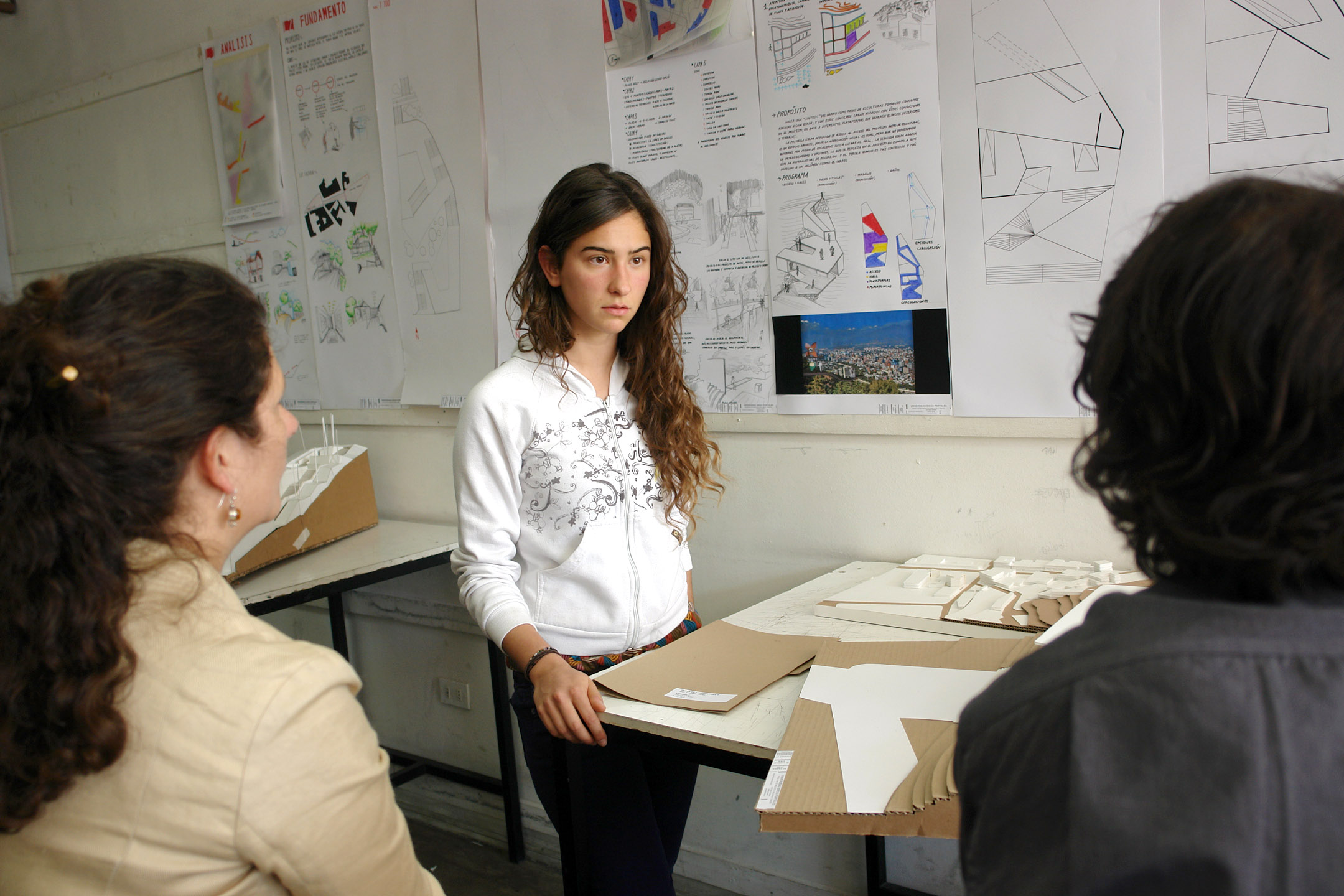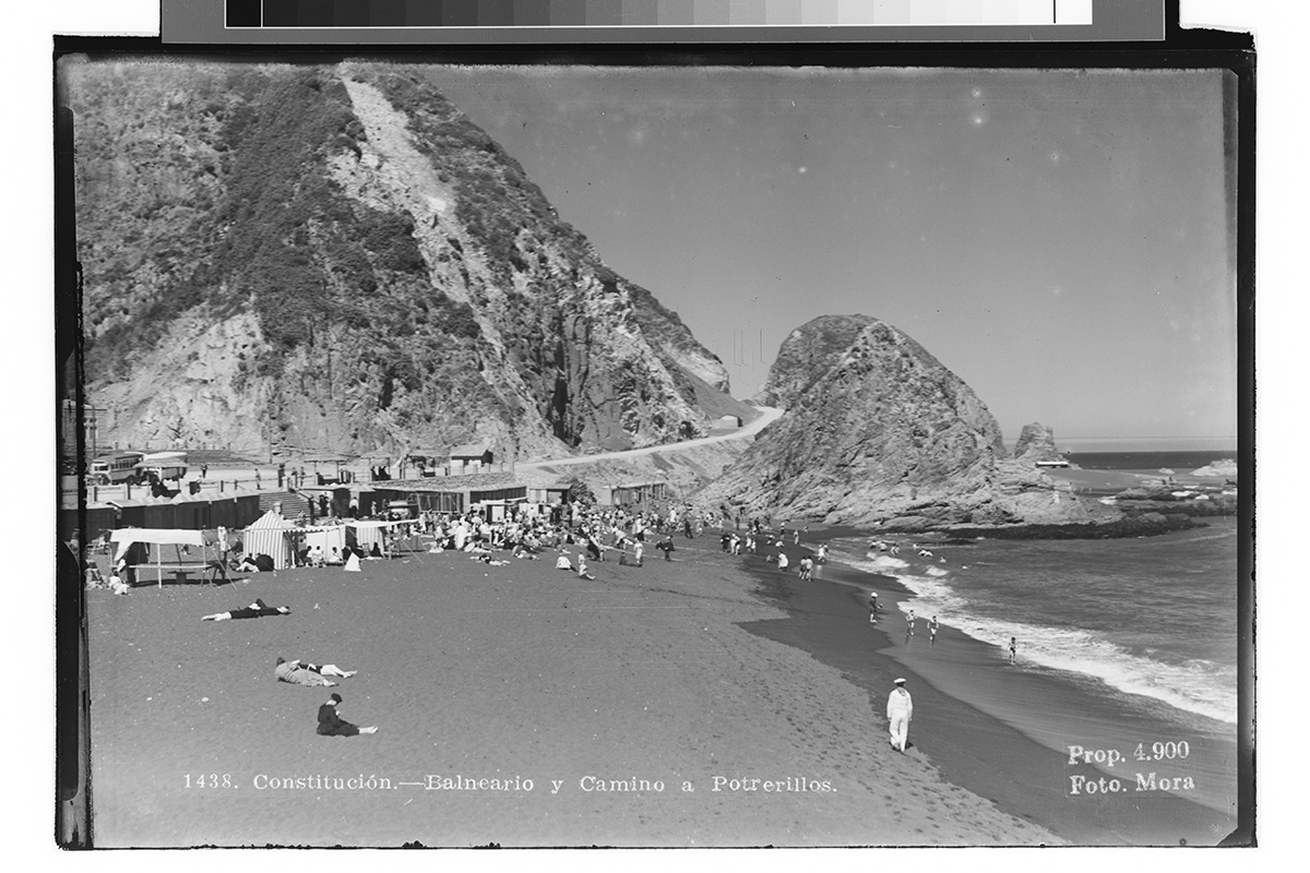 Vista de las laderas rocosas de un cerro, rodeado de abundante Vegetación, jardines y caminos peatonales. Destaca un torreón de ladrillo en la parte inferior de la fotografía, como un hombre de pie.