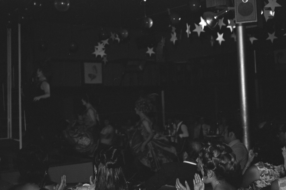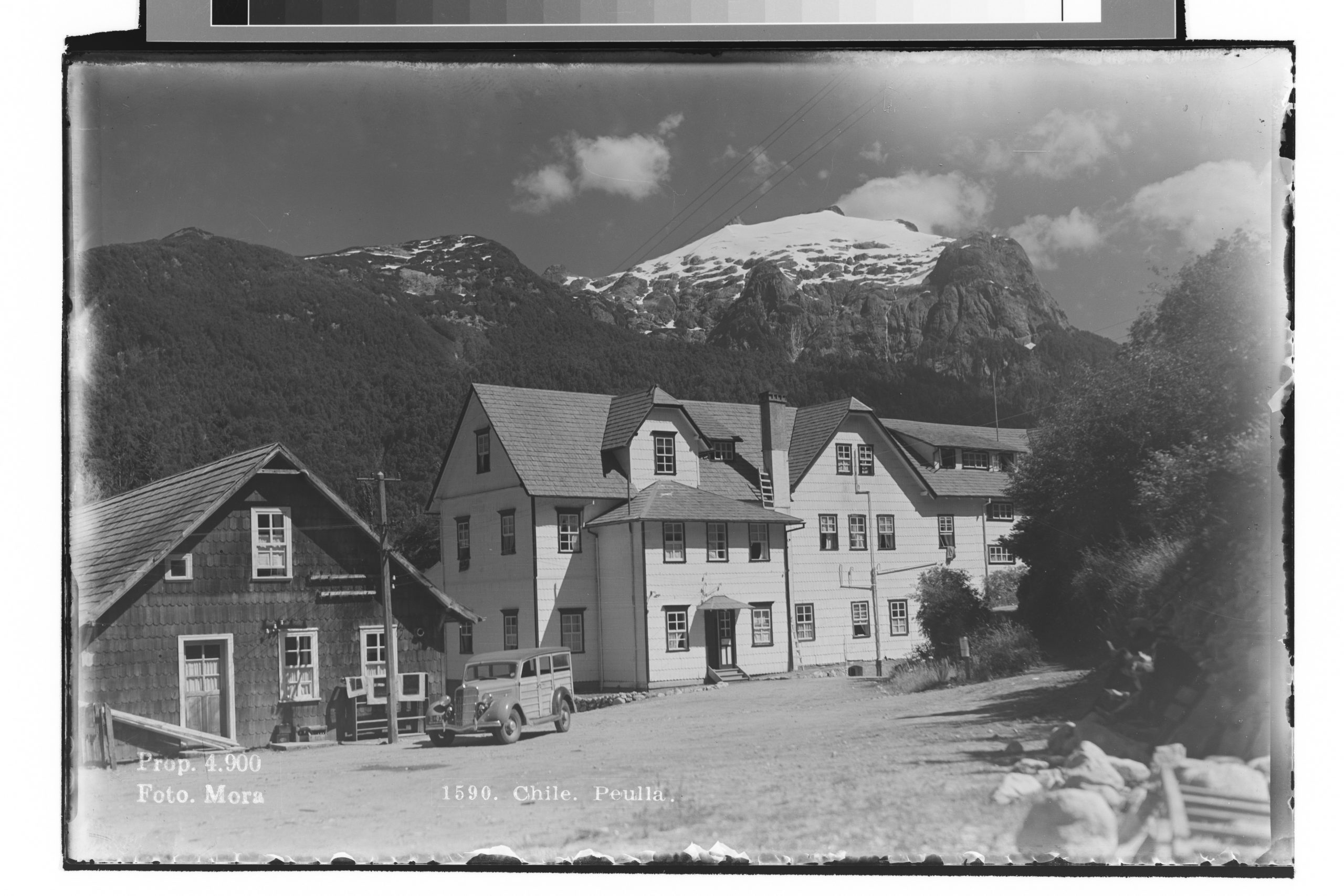 Una calle donde se encuentran tres Automóviles estacionados en ella, se encuentra rodeada de casas de distintos diseños y dos grandes palmeras.