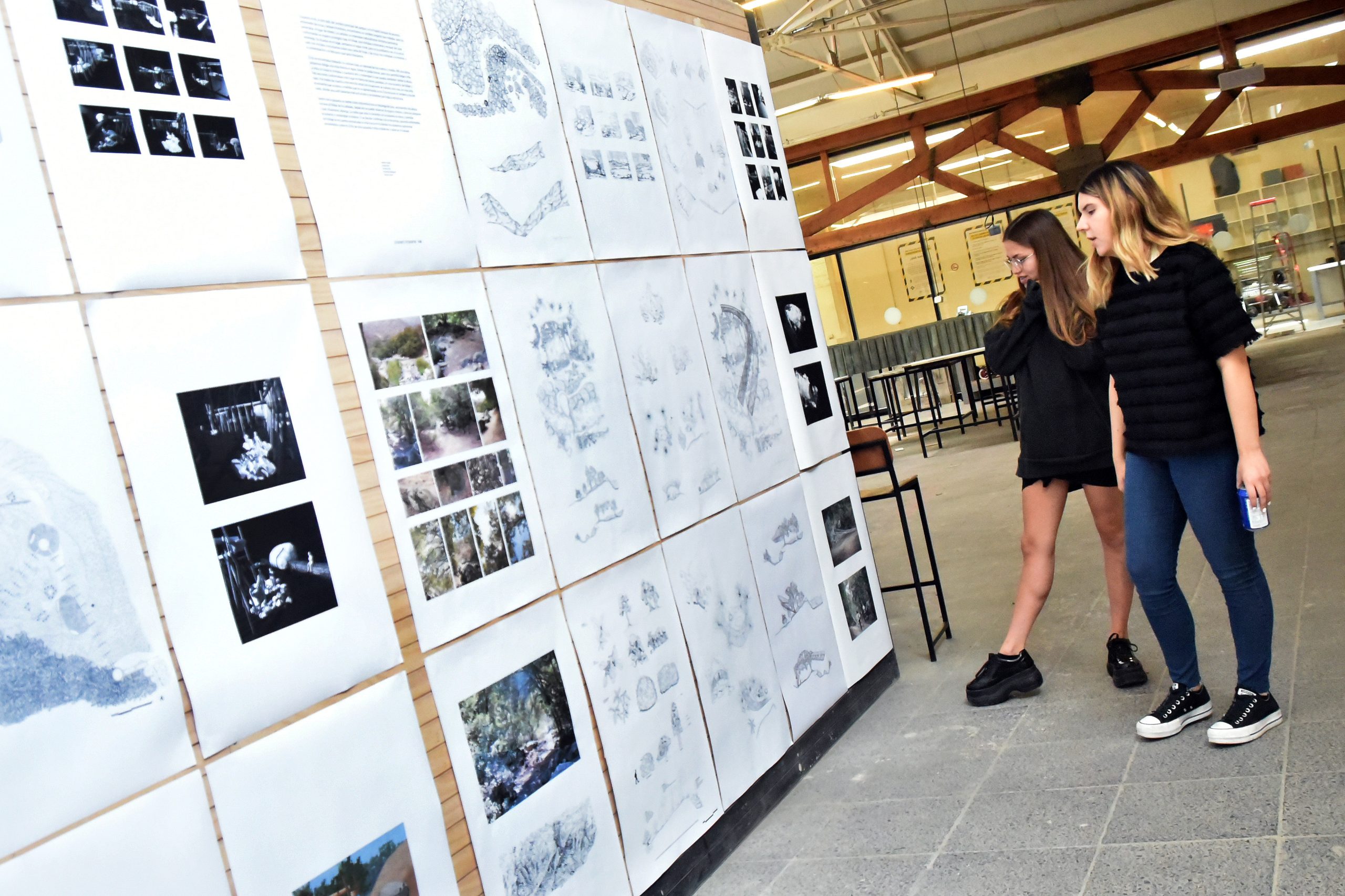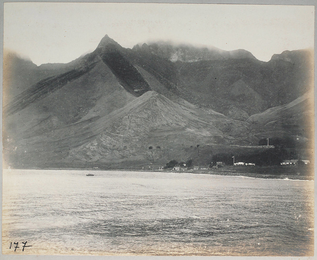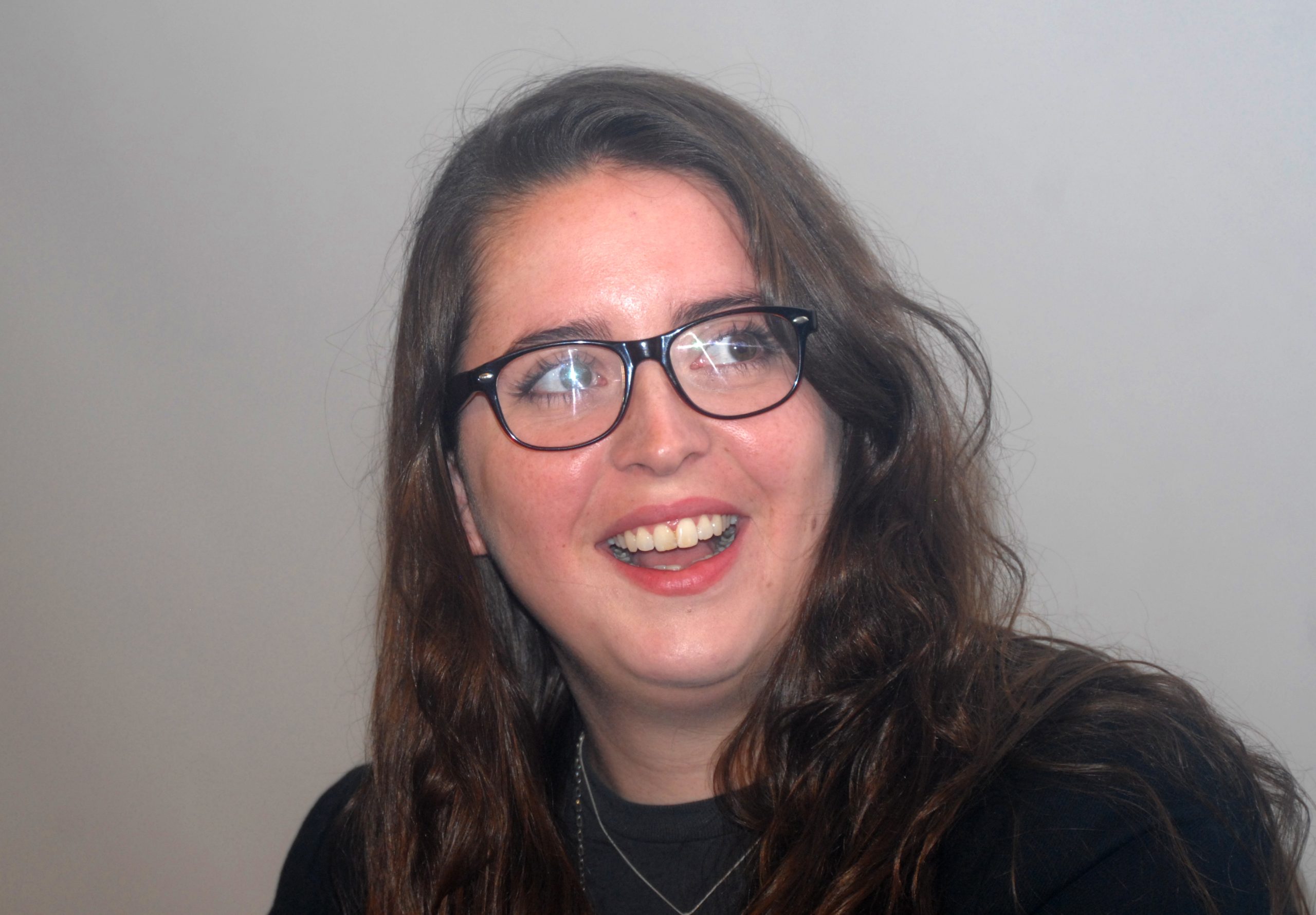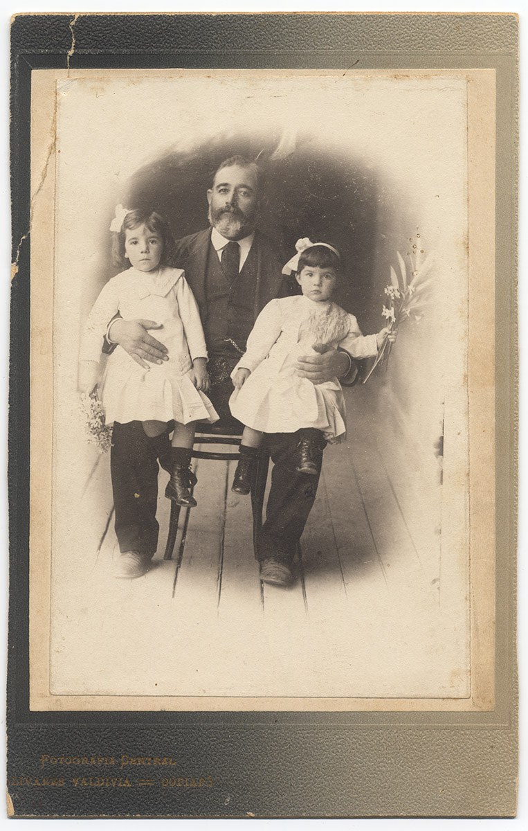 En la fotografía aparece una mujer de plano general apoyada en un balcón, vistiendo un vestido negro y un sombrero del mismo color. Además, sujeta un ramo de flores en su mano izquierda.