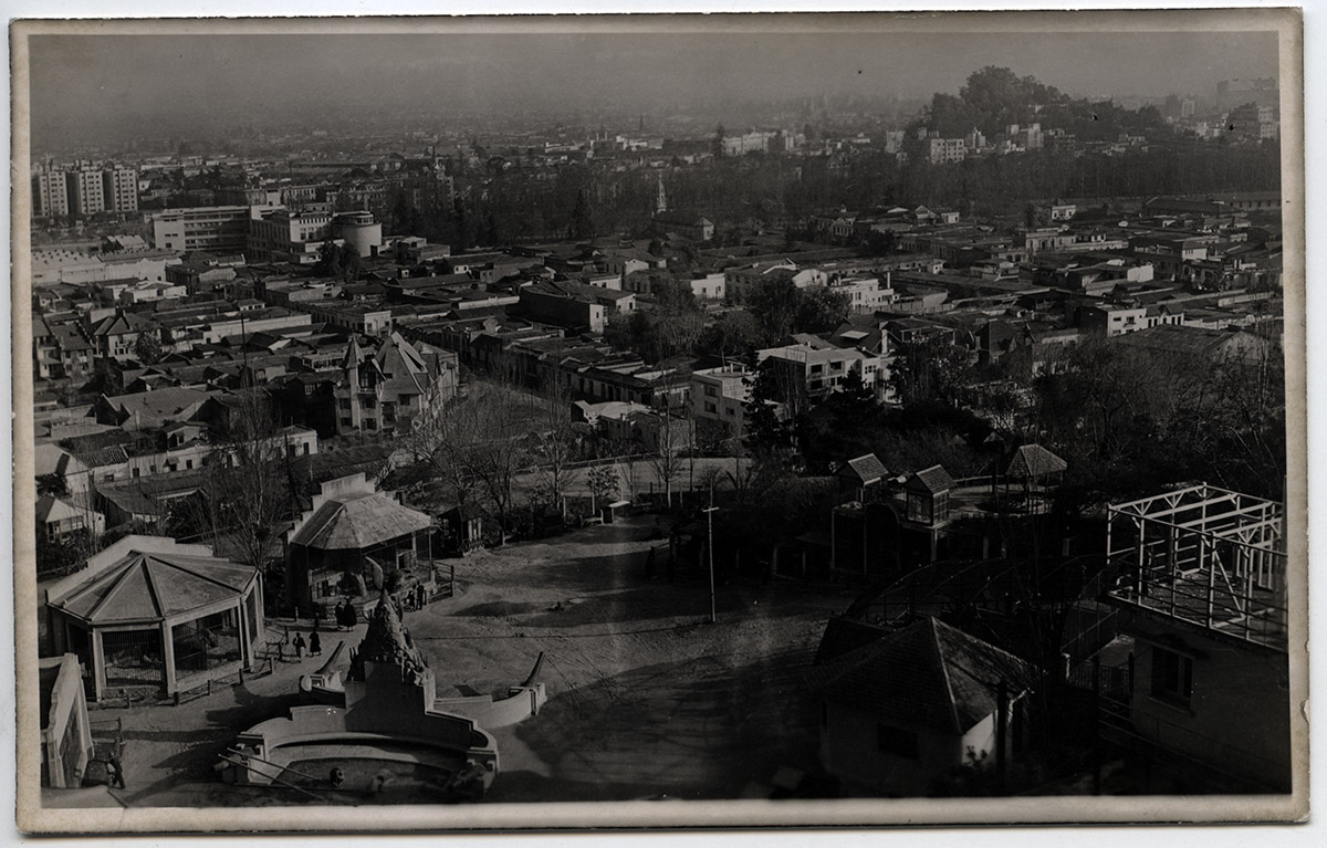 En el primer plano podemos observar una mujer y un hombre, mientras que en un segundo plano se aprecian dos hombres apoyados en un automóvil. Por las características de la fotografía se puede deducir que están en el ante jardín de una casa.