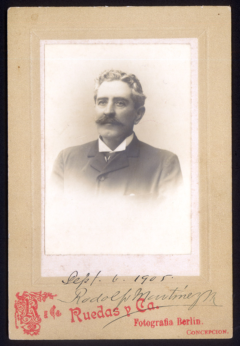 Reproducción del cuadro de forma ovalada representando un hombre con terno negro.