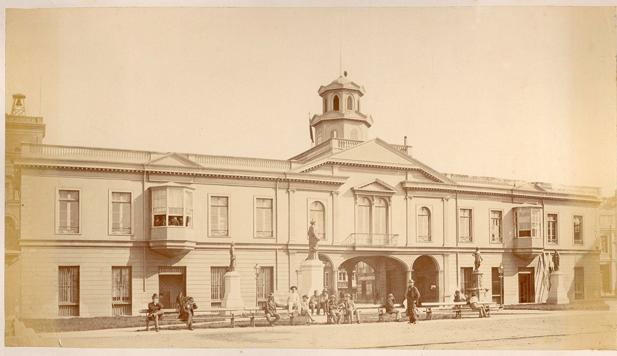 Retrato de busto de un hombre con terno negro, camisa blanca y corbata negra.