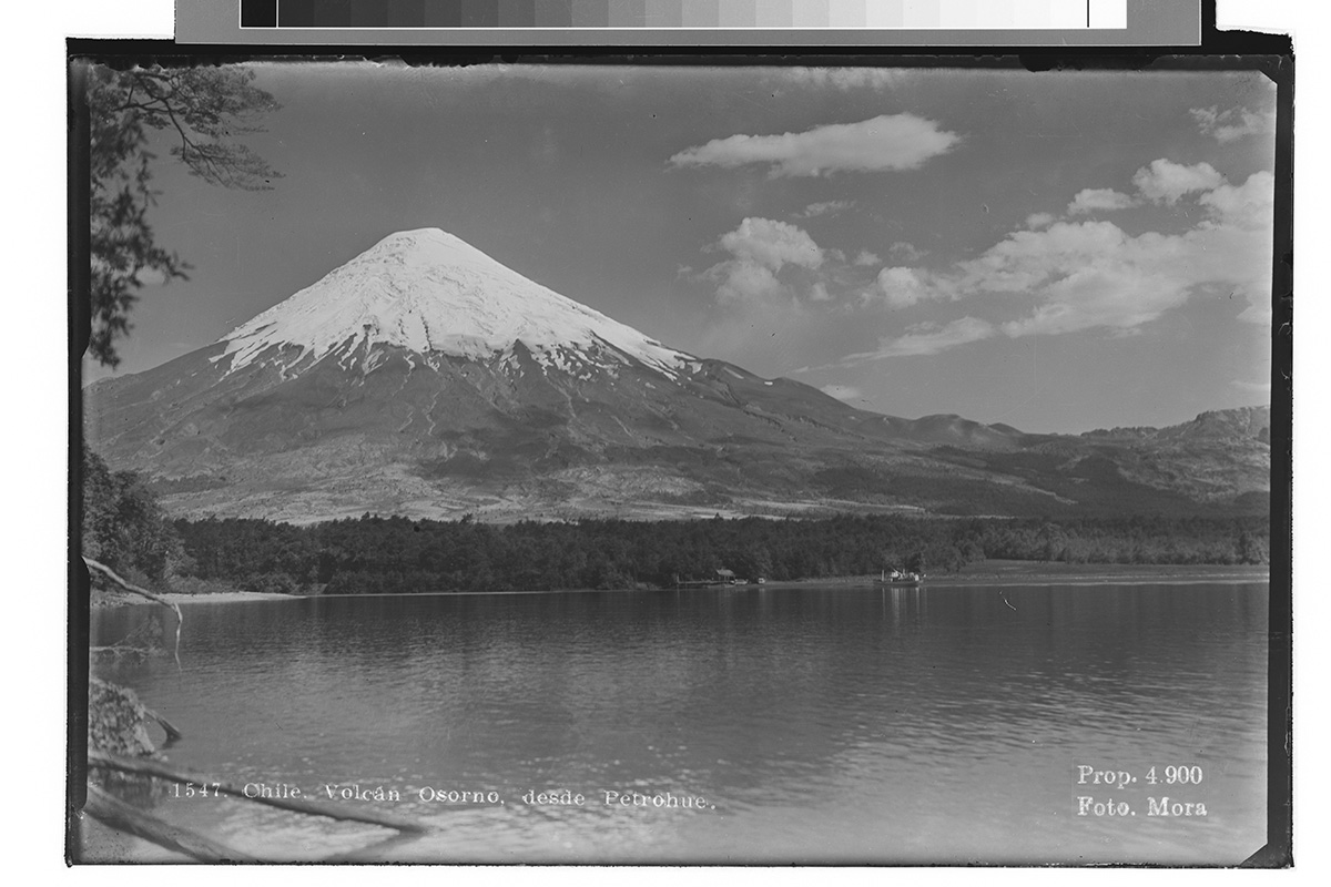 Vista de un bote transportando dos mujeres y un hombre de una orilla a otra de un río. Al otro lado se ven casas de una ciudad.
