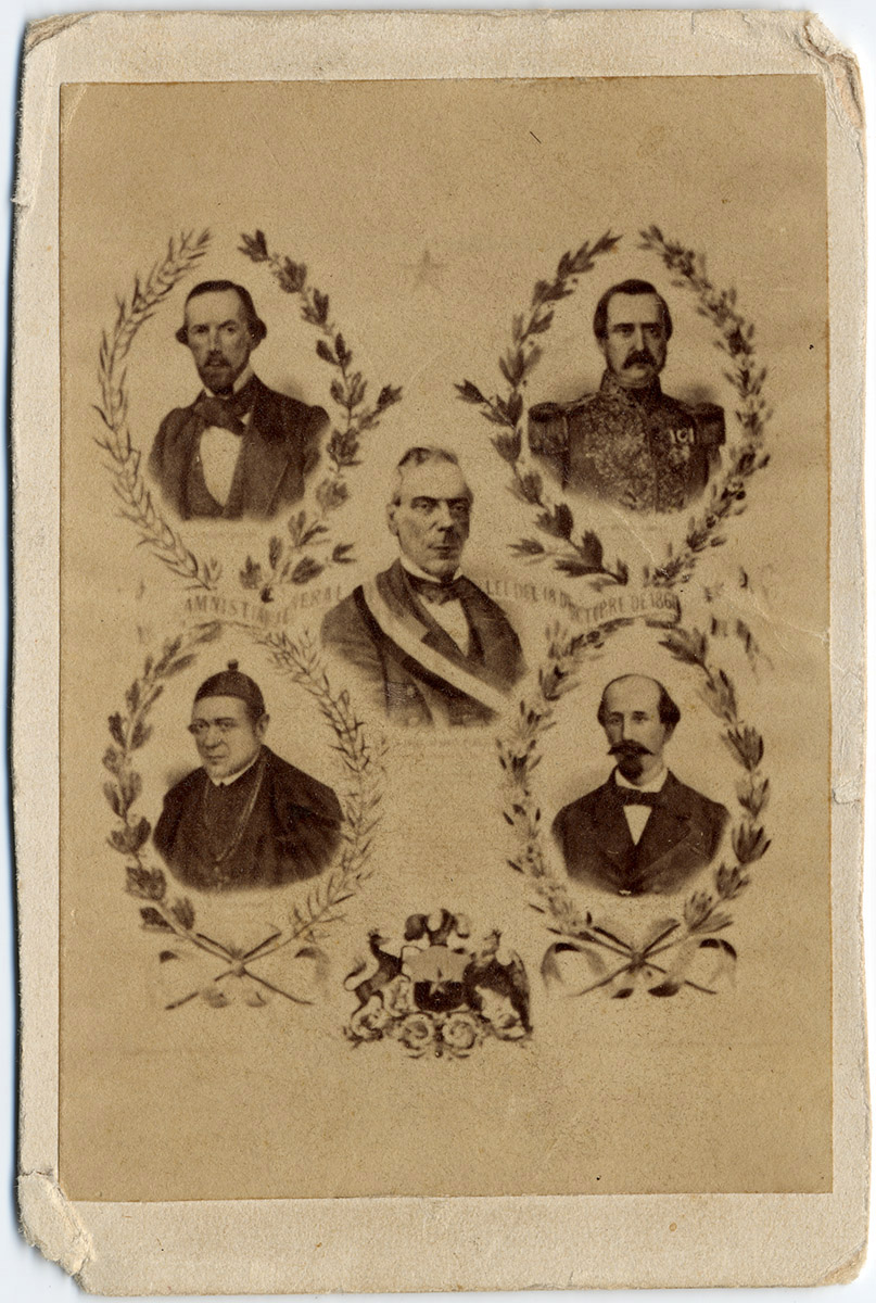 Retrato de pie de una mujer con pelo recogido y vestido negro amplio con cuello blanco y cubierto por un chal negro. Apoya una mano sobre el respaldo de una silla.