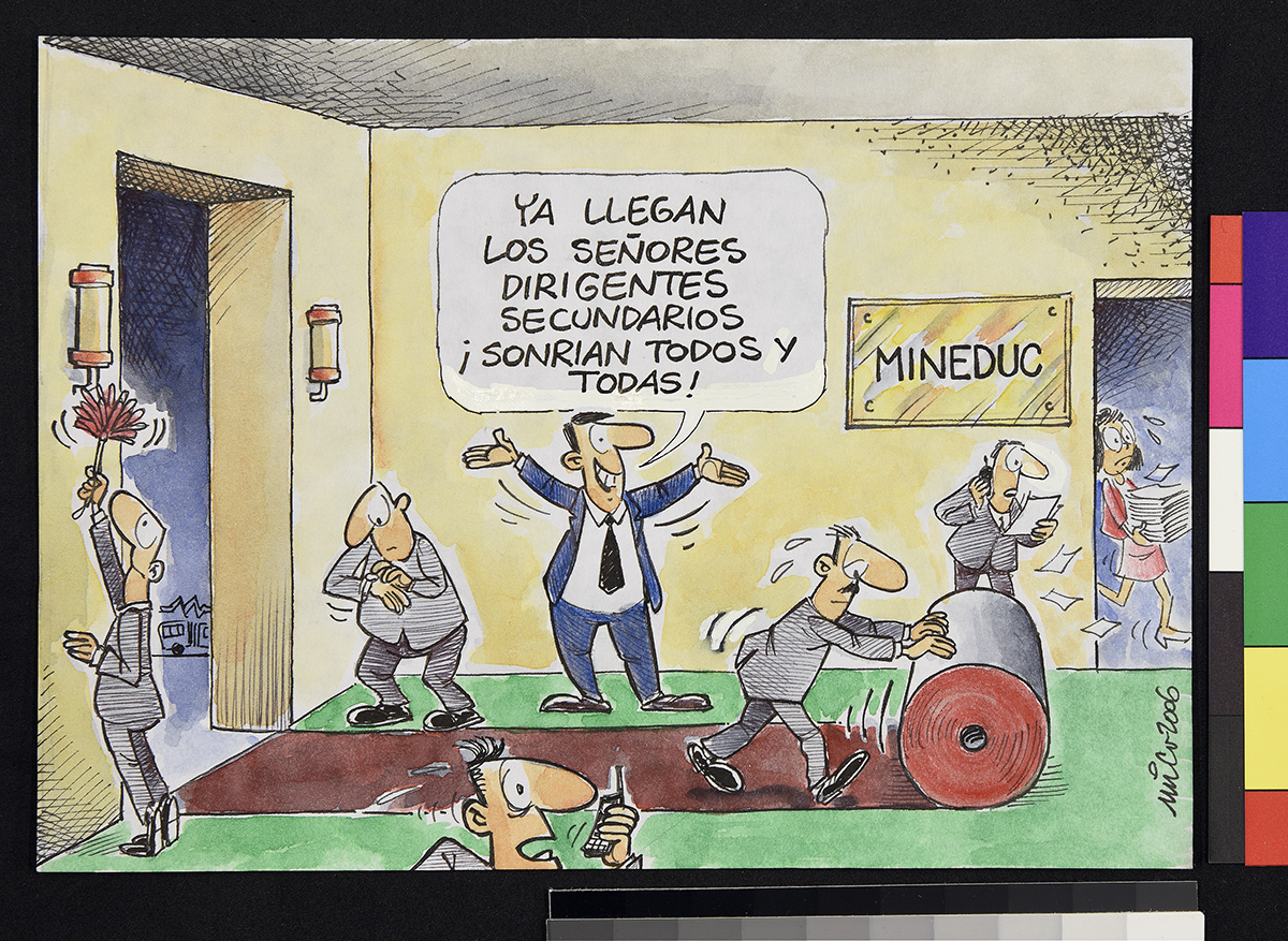 Dibujo de varios policías con traje de fuerzas especiales que apuntan hacia un ratón que tiene entre sus dientes un cable cortado con un enchufe.