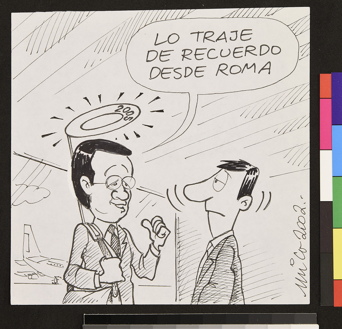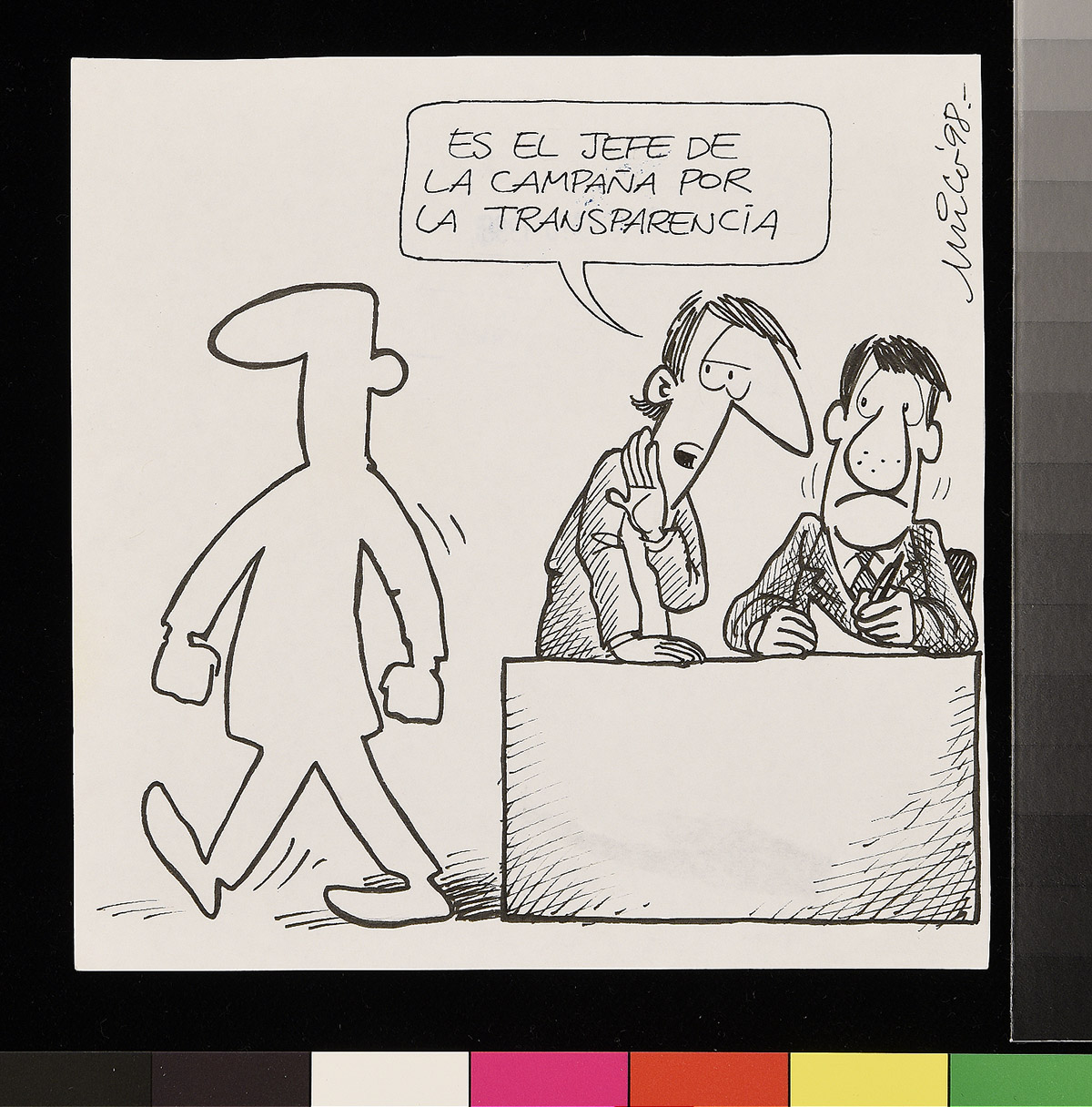 DIbujo de un hombre que indica dos escaleras a las personas que se acercan caminando, hinchas de la Universidad de Chile.