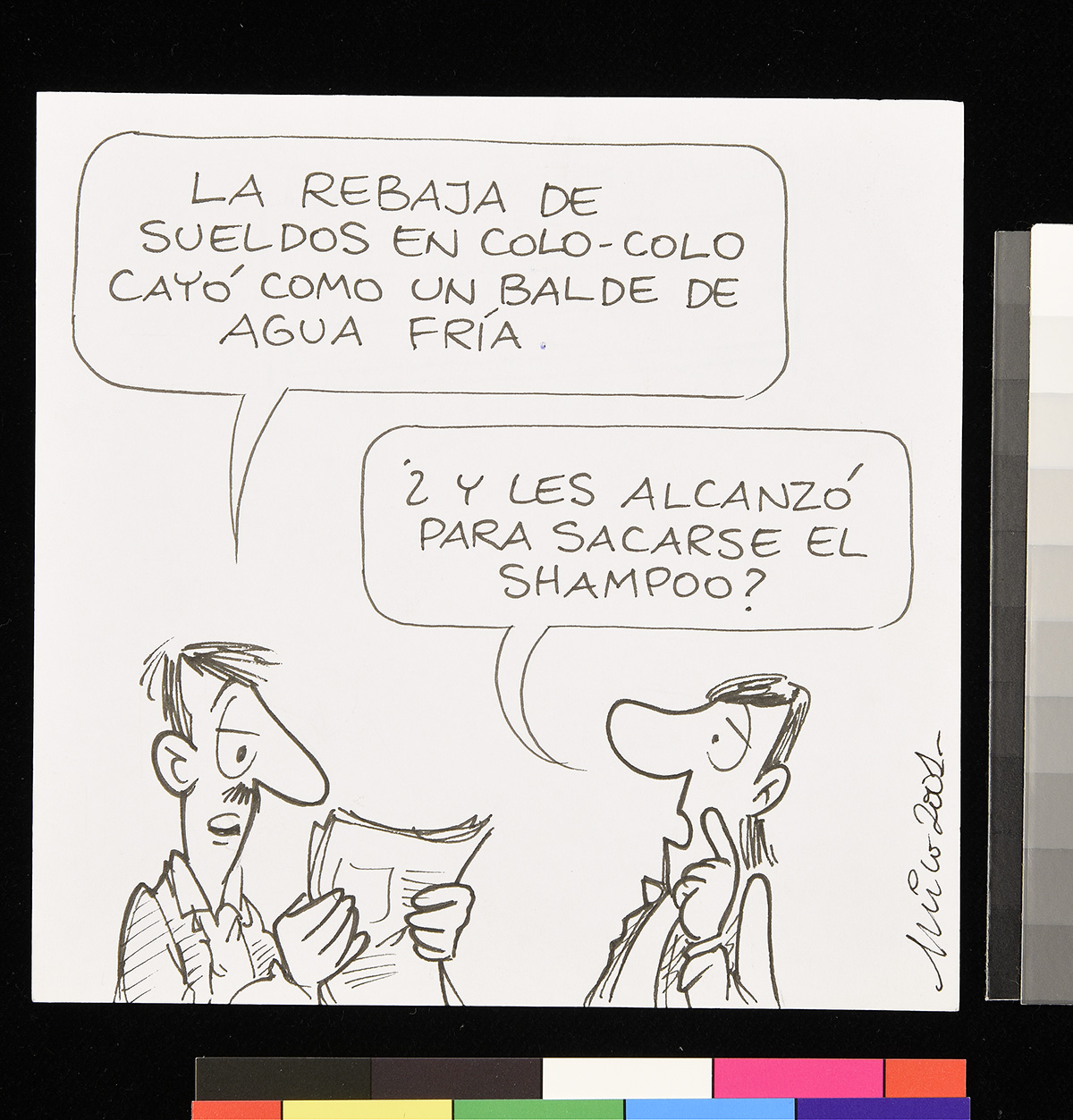 Dibujo de dos personas conversando en una mesa