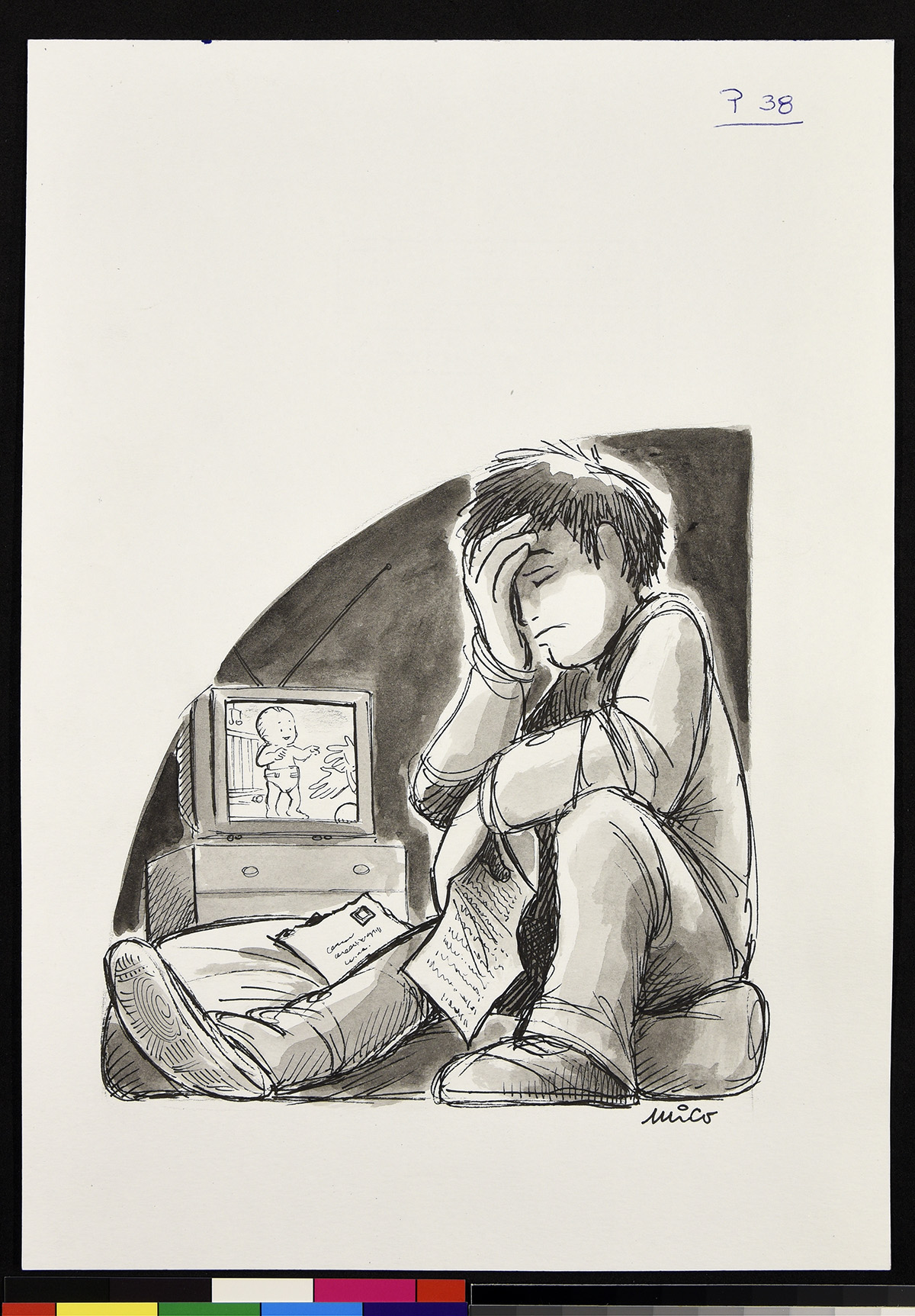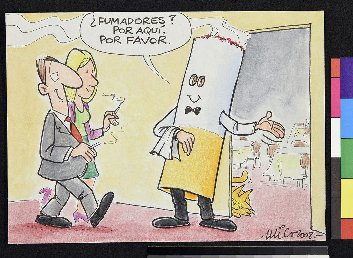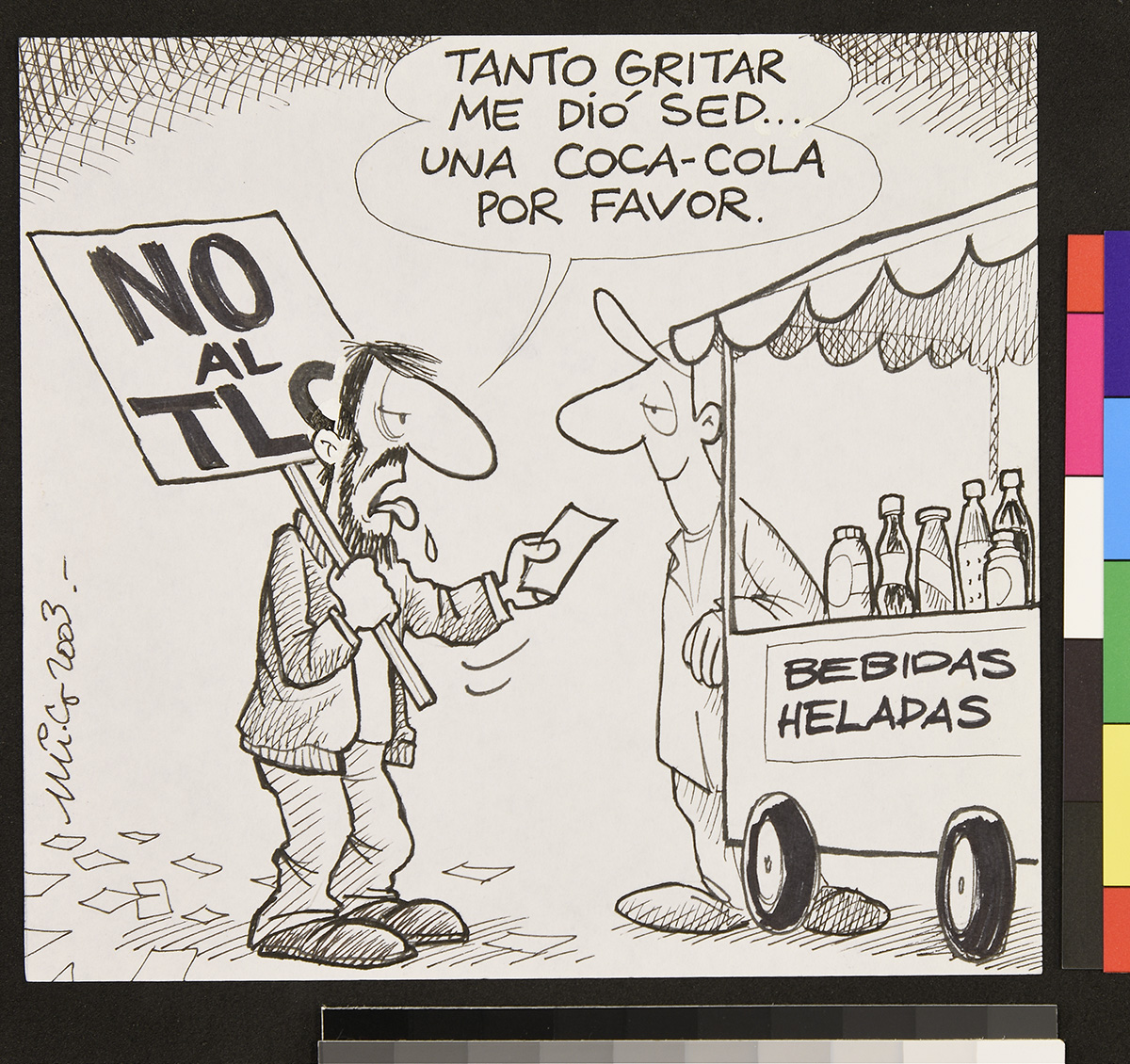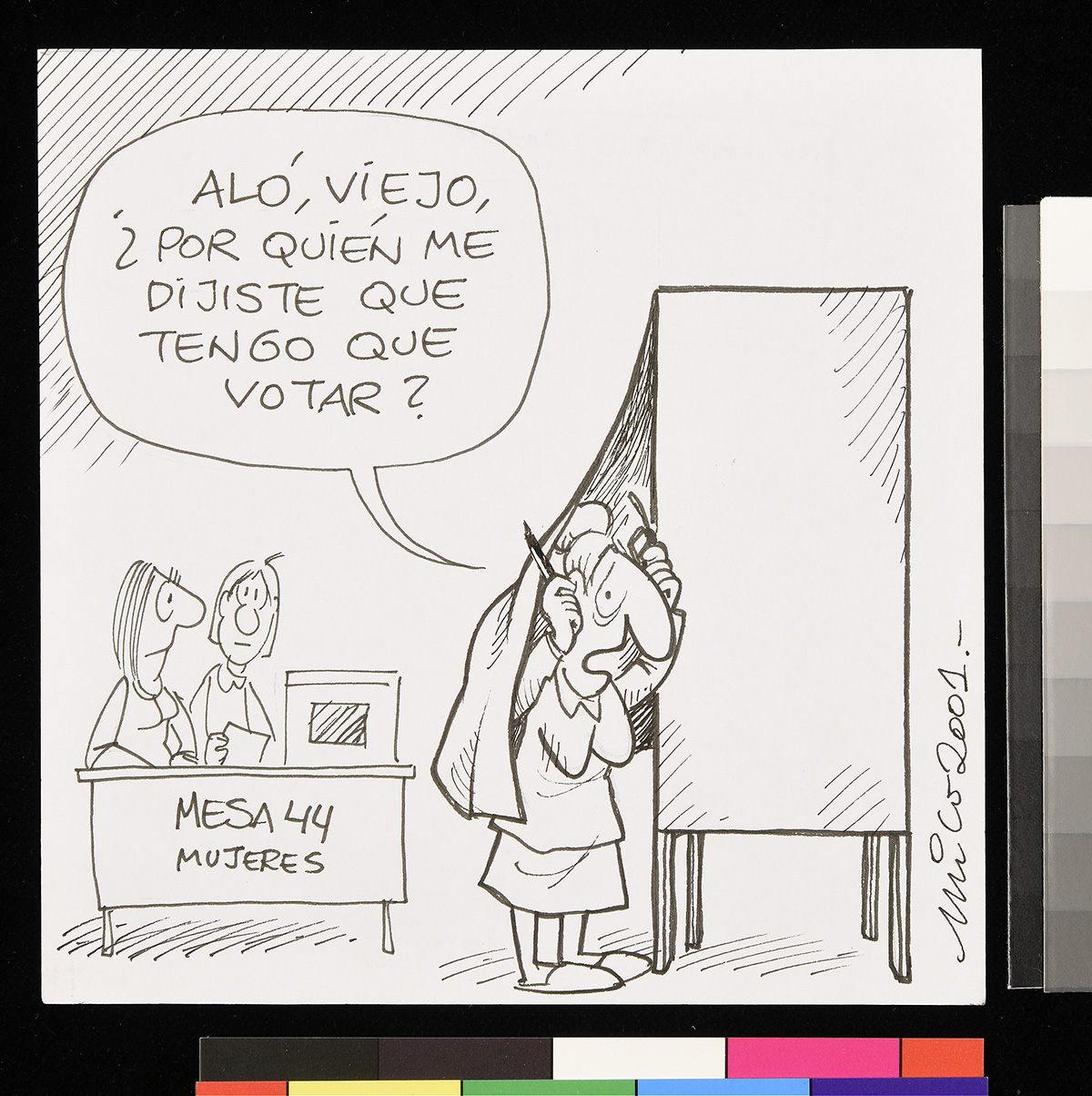 Dibujo de varias personas que están celebrando con banderas de Chile y calculadoras en sus manos. Todos se encuentran en un espacio urbano, junto a un monumento.