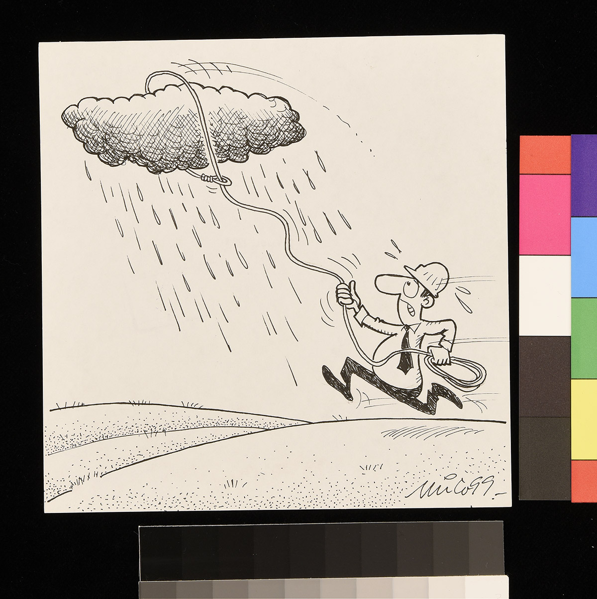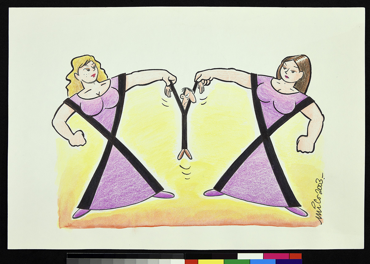 Dibujo de un hombre recostado sobre una toalla, que conversa con una mujer que acaba de salir de una piscina.