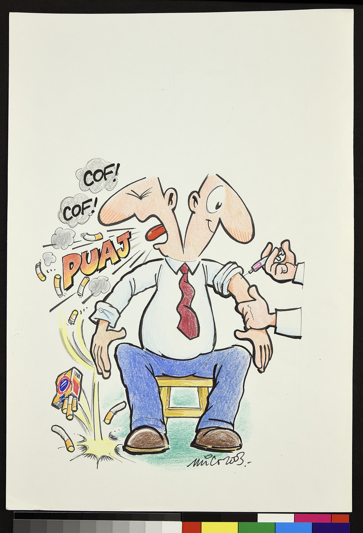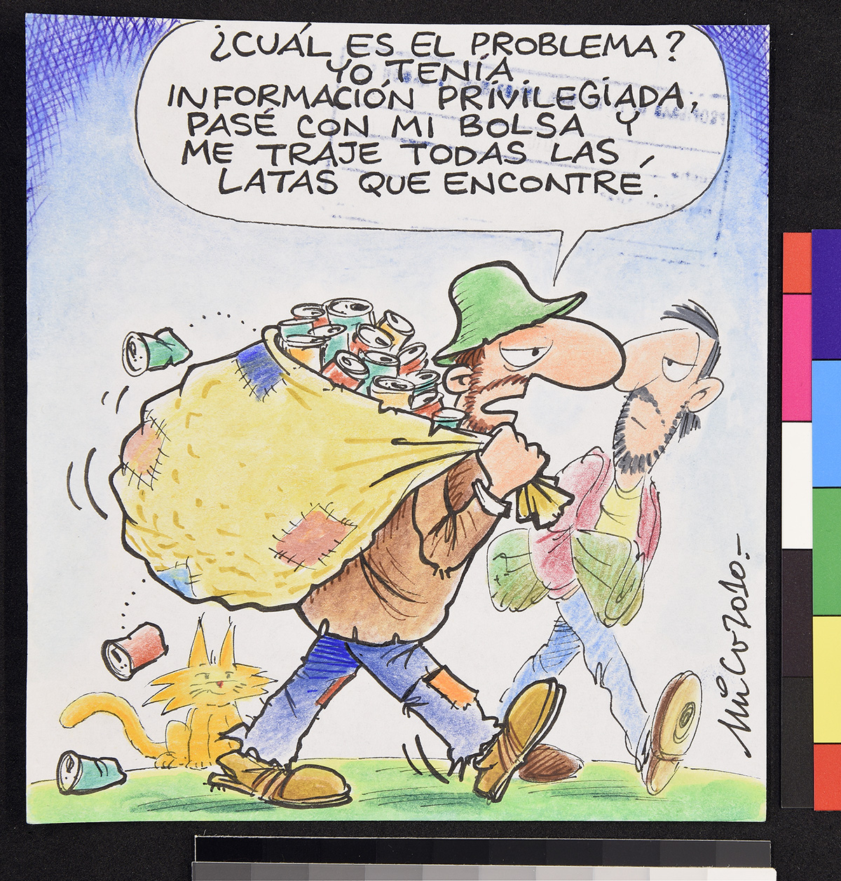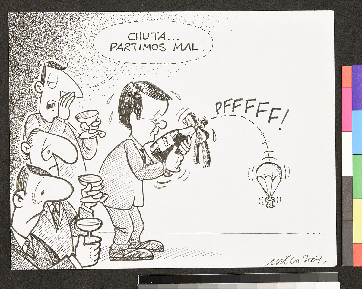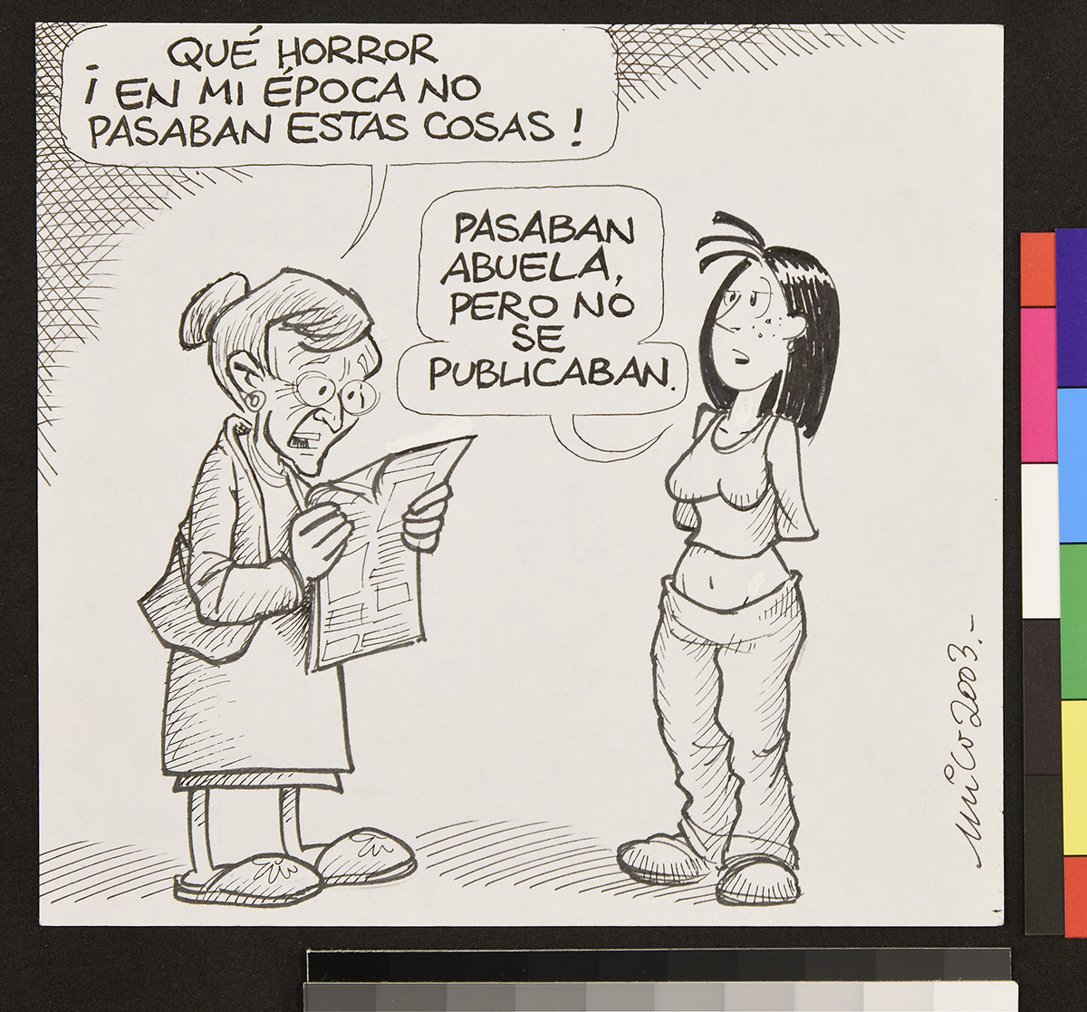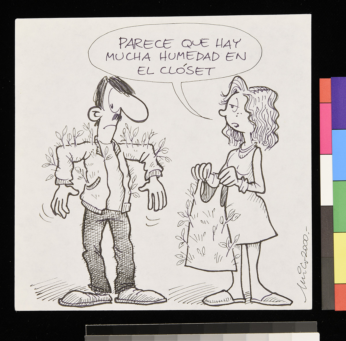Dibujo de una familia, donde todos van de la mano, pero tres de ellos ocupan auriculares con reproductores de música.