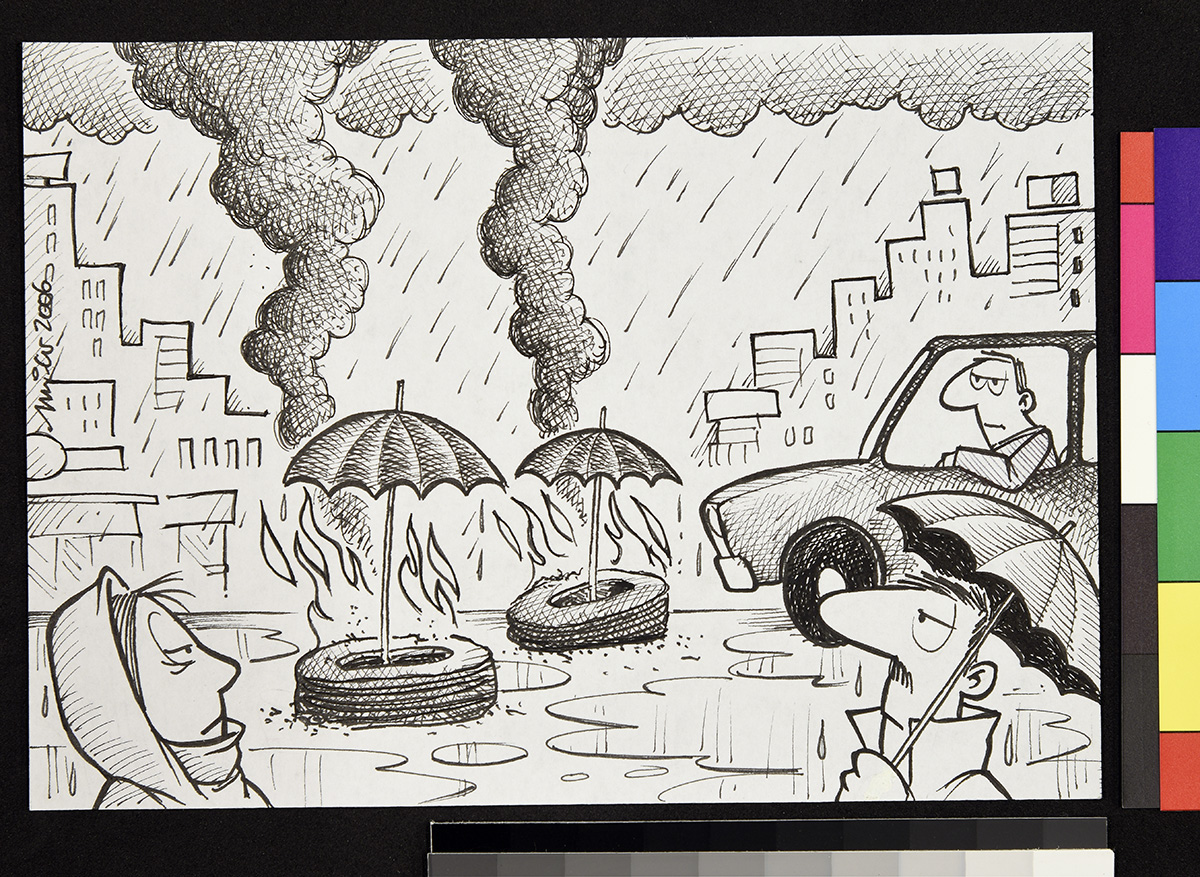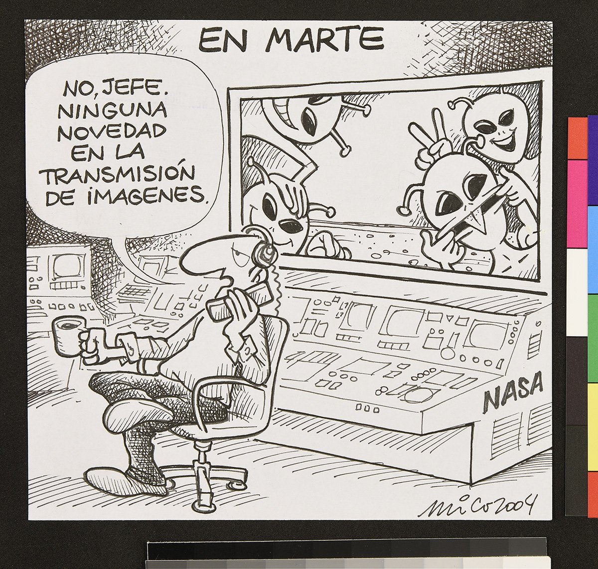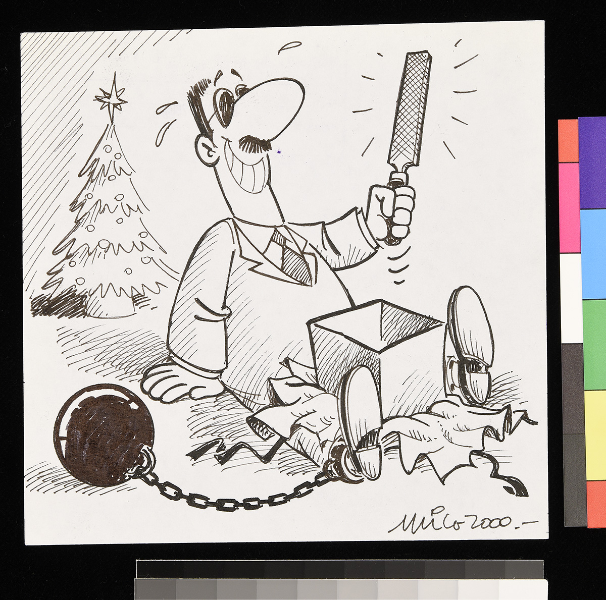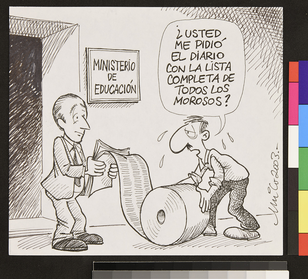 Dibujo de una familia, donde todos van de la mano, pero tres de ellos ocupan auriculares con reproductores de música.