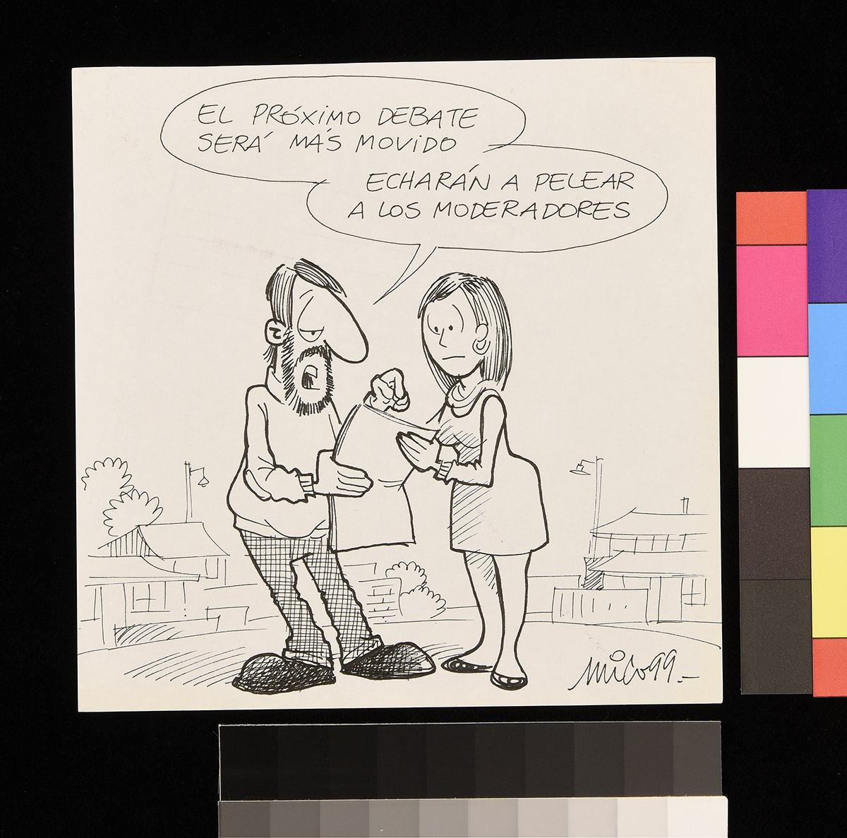 Dibujo de un niño que encumbra un volantín mientras el otro niño que está a su lado tiene lista la honda que sostiene en sus manos para disparar a otros volantines.