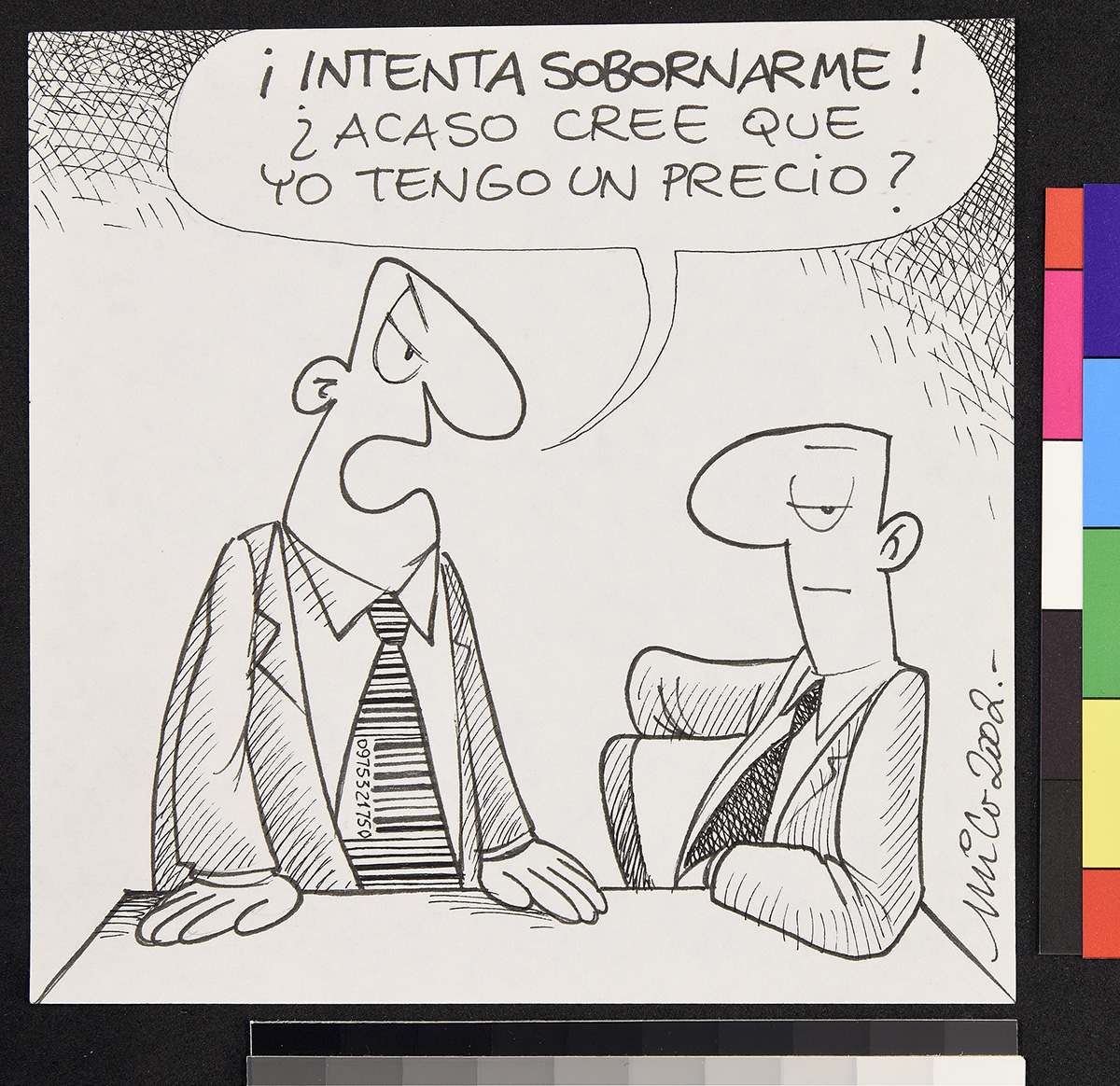 Dibujo de un alcalde leyendo un libro sobre como bailar cueca