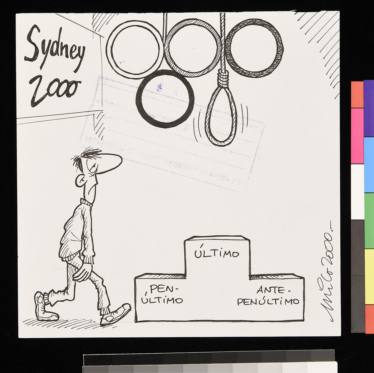 Dibujo de un hombre de traje y lentes oscuros tomando un vuelo