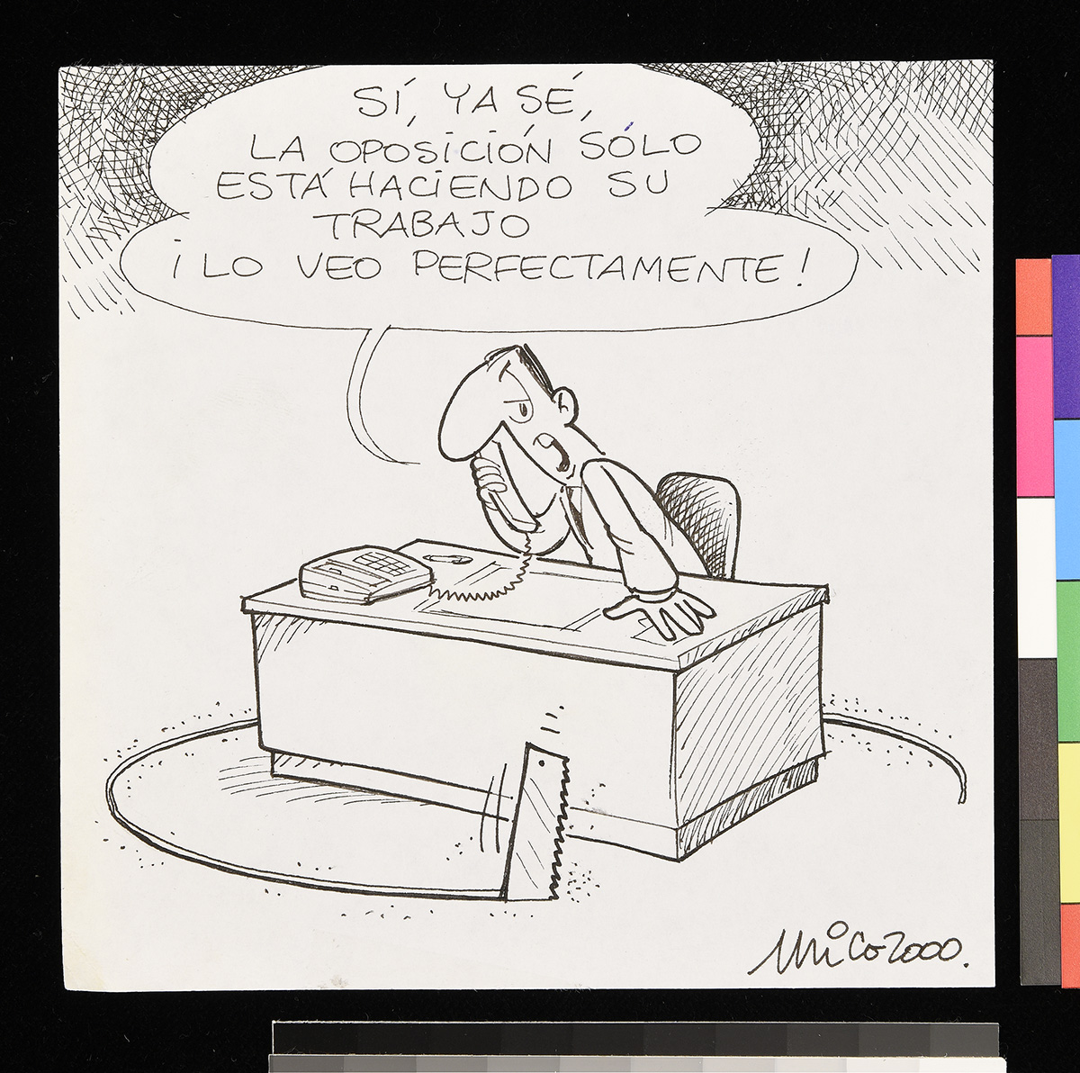 Dibujo de un hombre que prende un cigarrillo con fósforos. El humo que emana el cigarrillo tiene forma del símbolo peso.