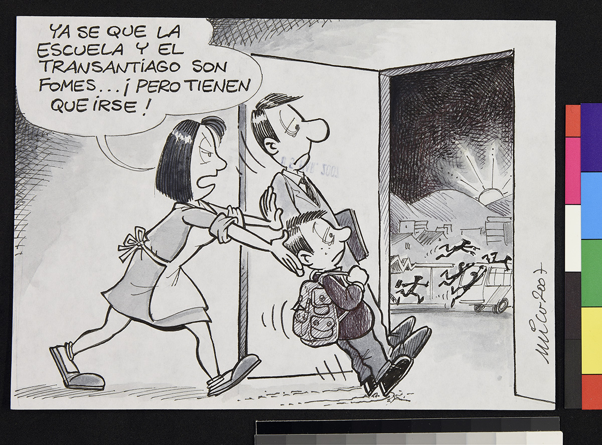 Dibujo de un hombre de pie, que sostiene un periódico en sus manos.