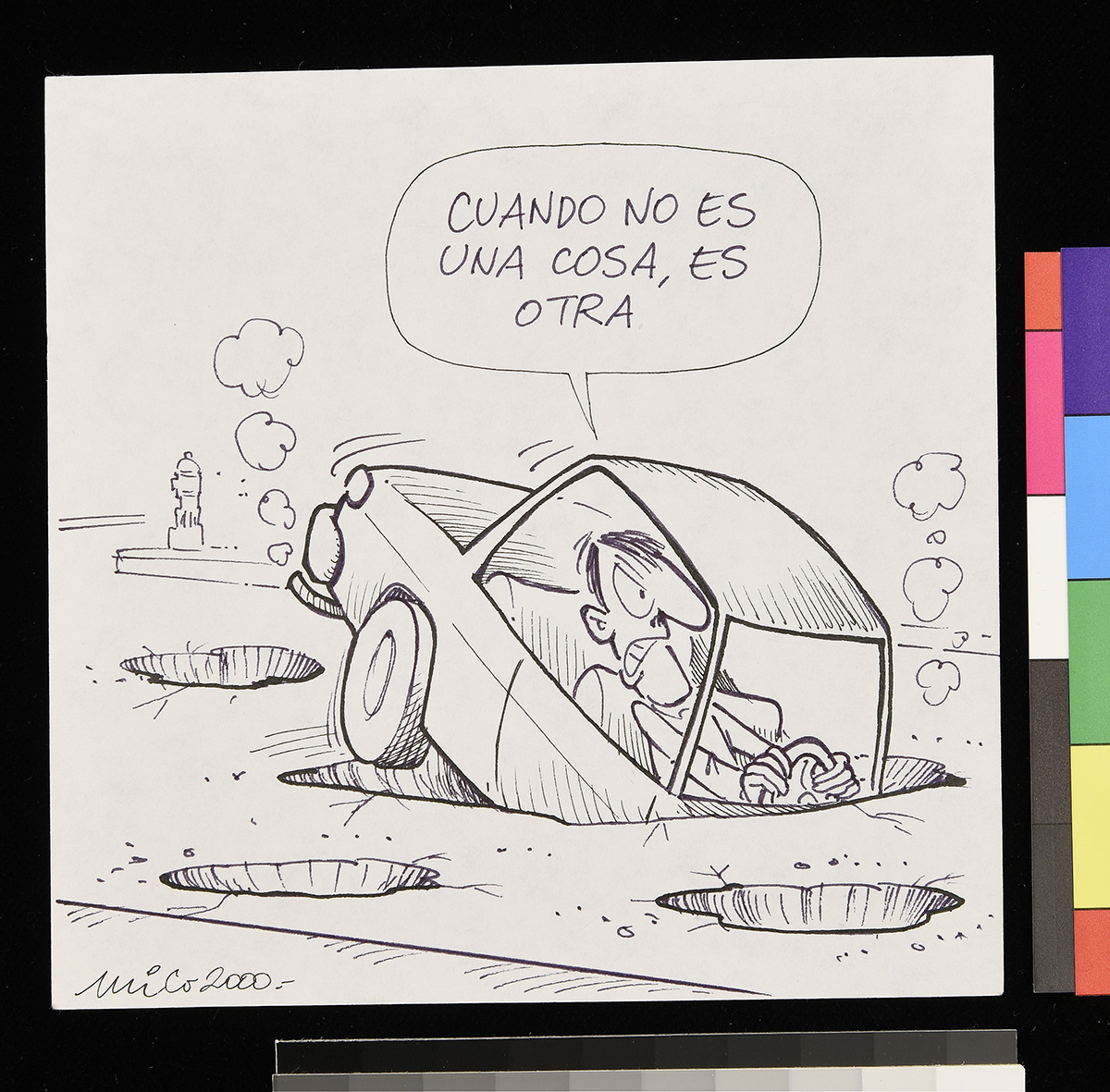Dibujo de dos soldados conversando, donde uno con una inscripción en su casco “UK” le muestra un documento al soldado con la inscripción “USA” en su casco.