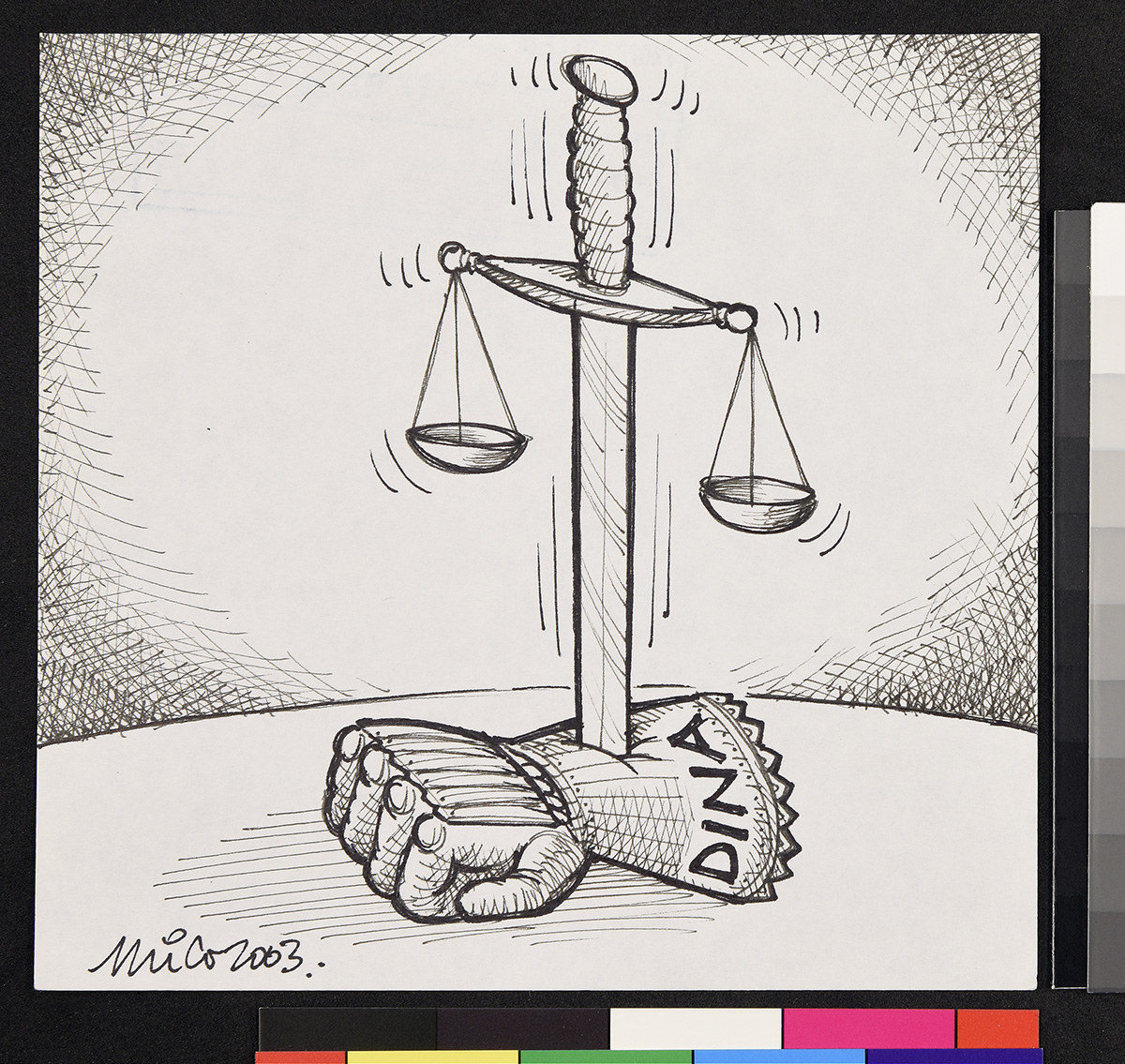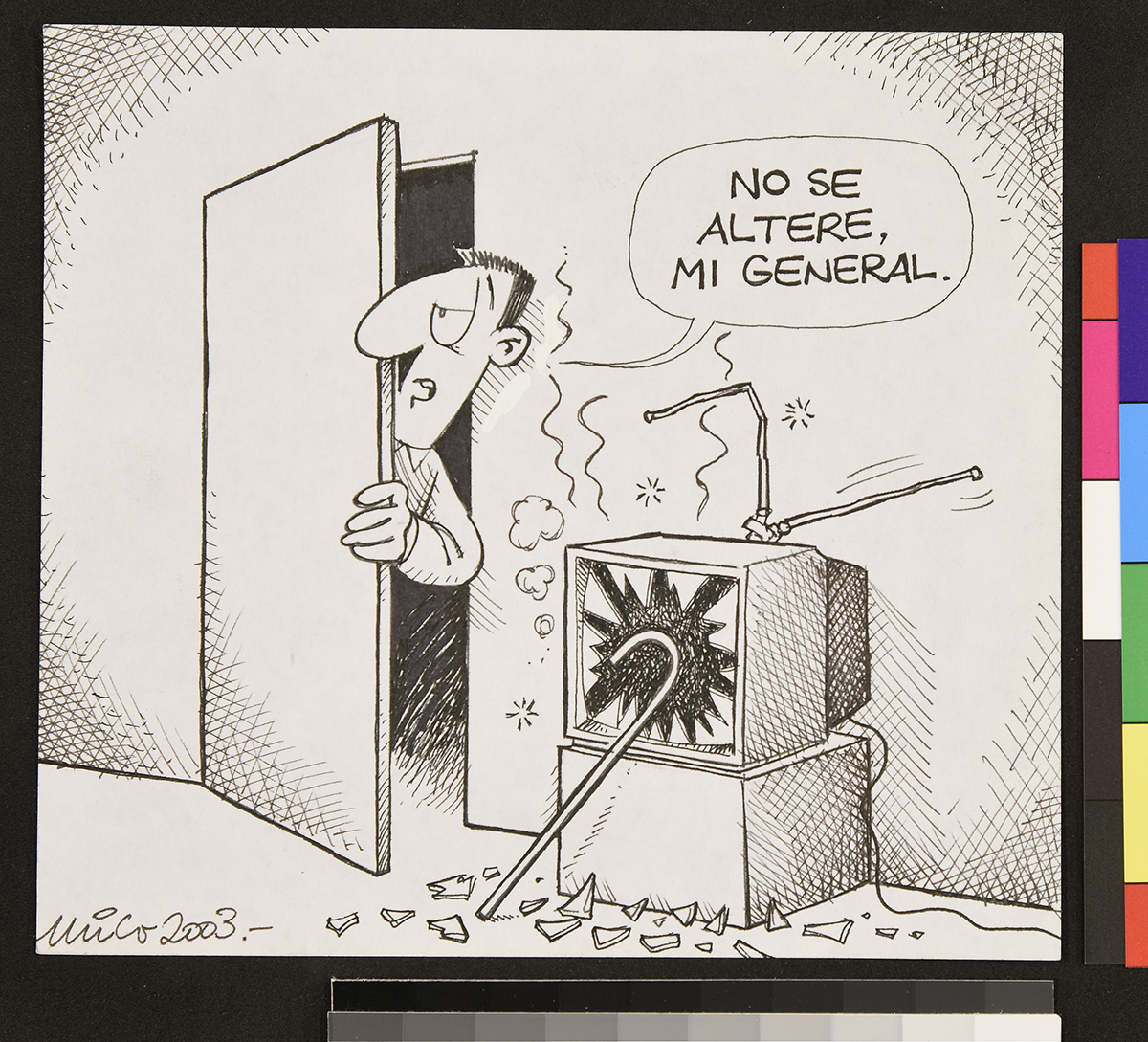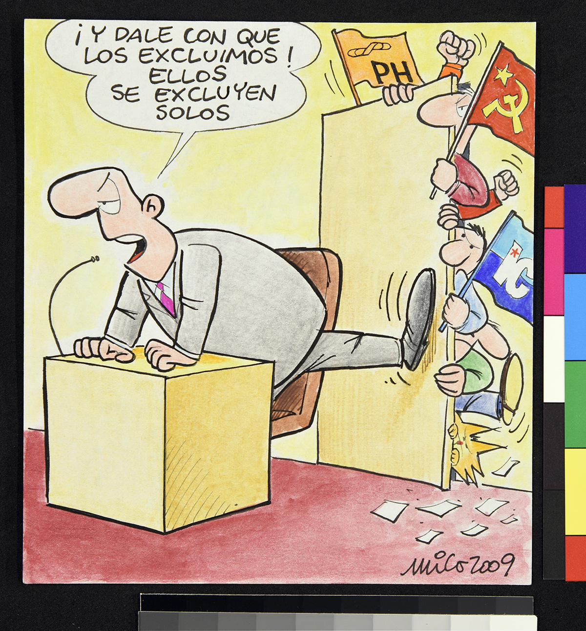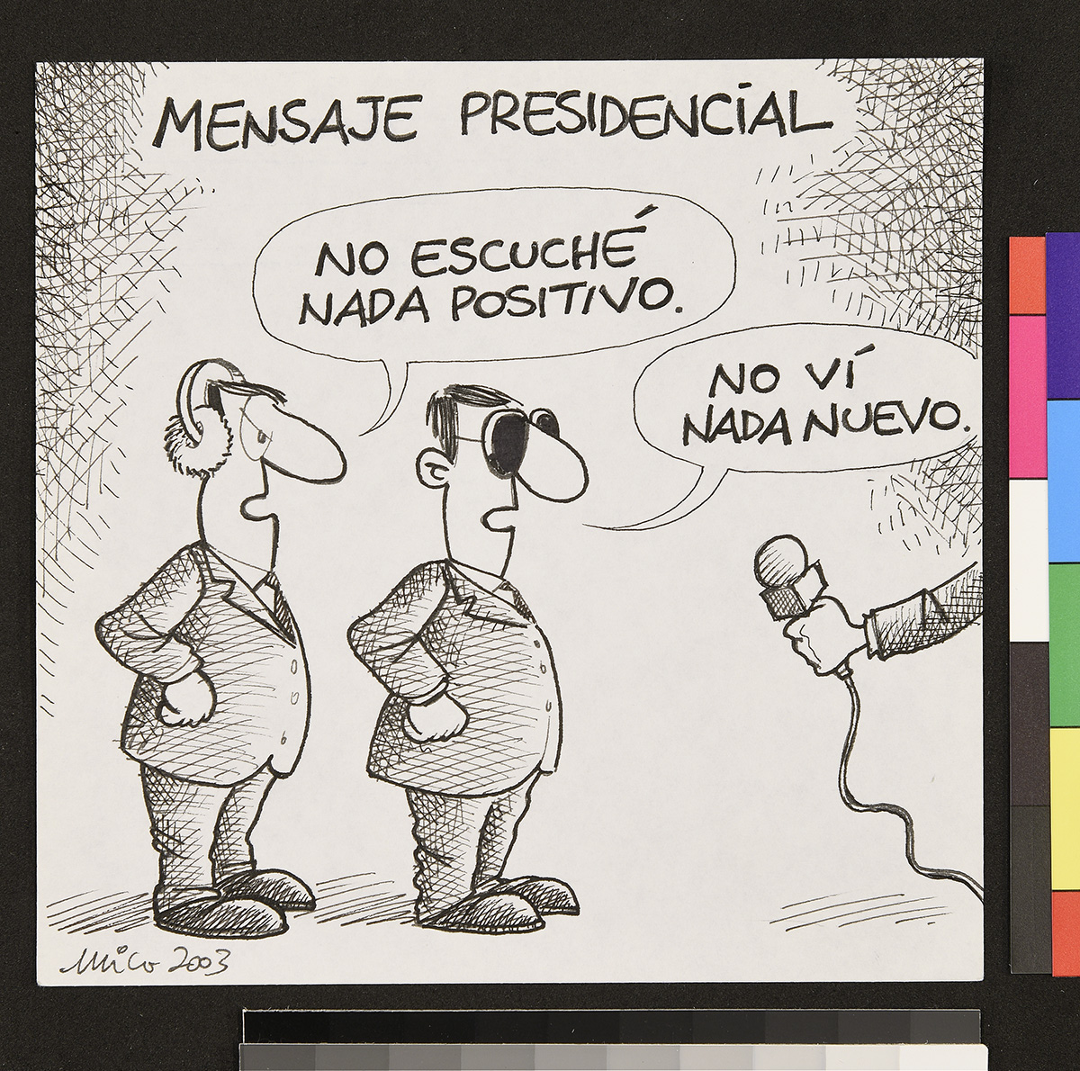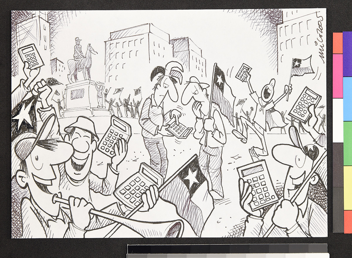 Dibujo de una persona de traje hablando con otra aparentemente más pobre