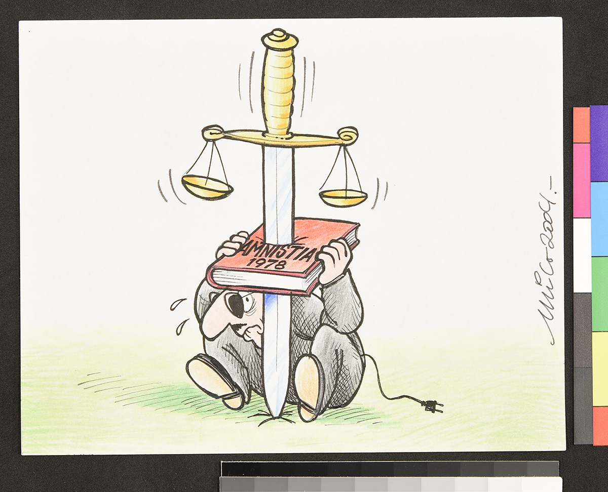 Dibujo de un hombre y una mujer que caminan juntos debajo de la lluvia en un espacio urbano.