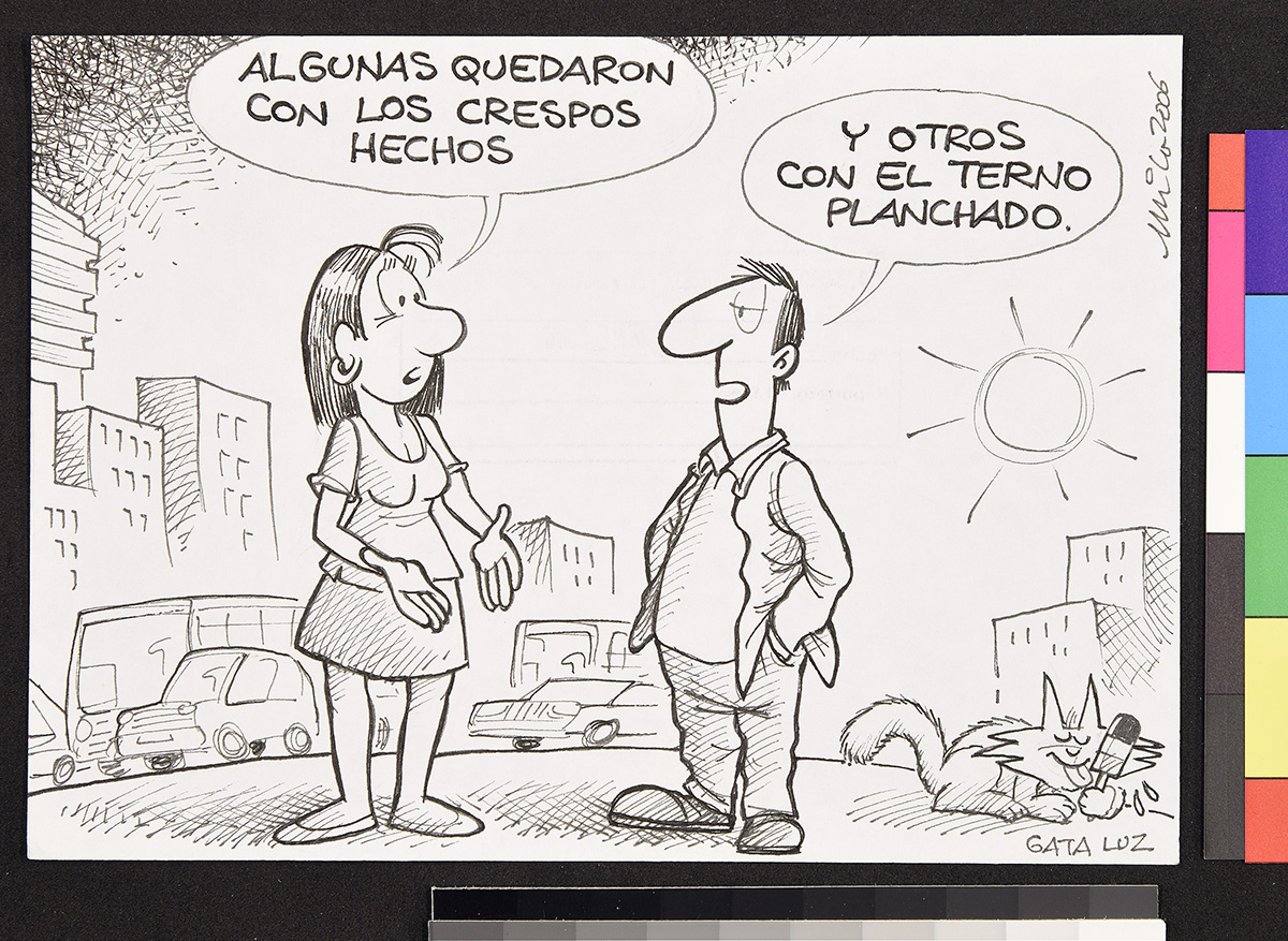 Dibujo de un hombre que está sentado en un extremo de una cama leyendo un libro. Detrás de él hay una gata acostada. Al otro costado de la cama hay un niño acostado, tapado, con sus manos cruzadas.
