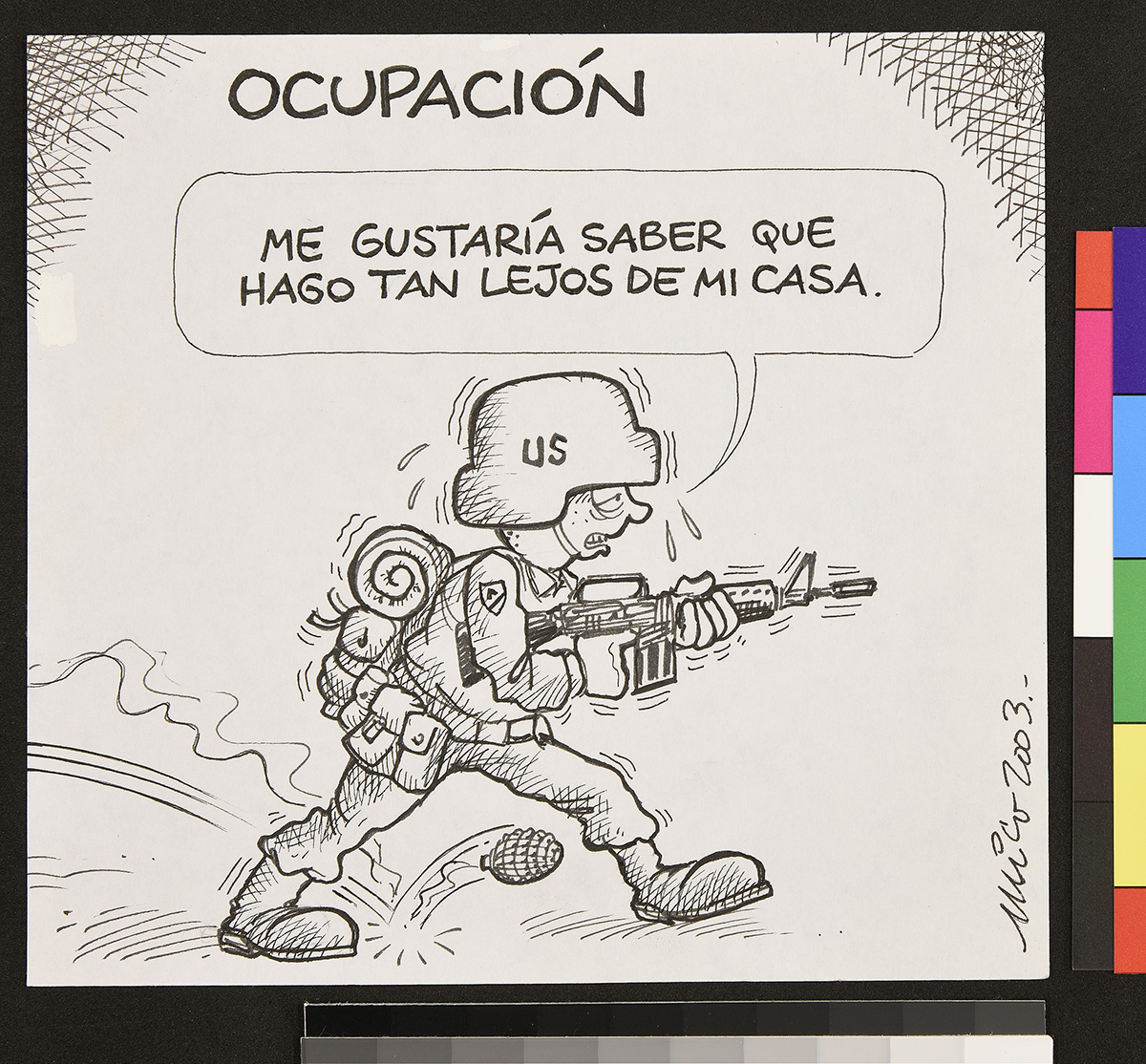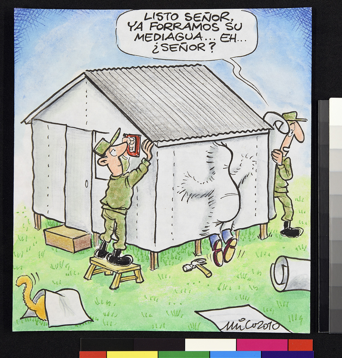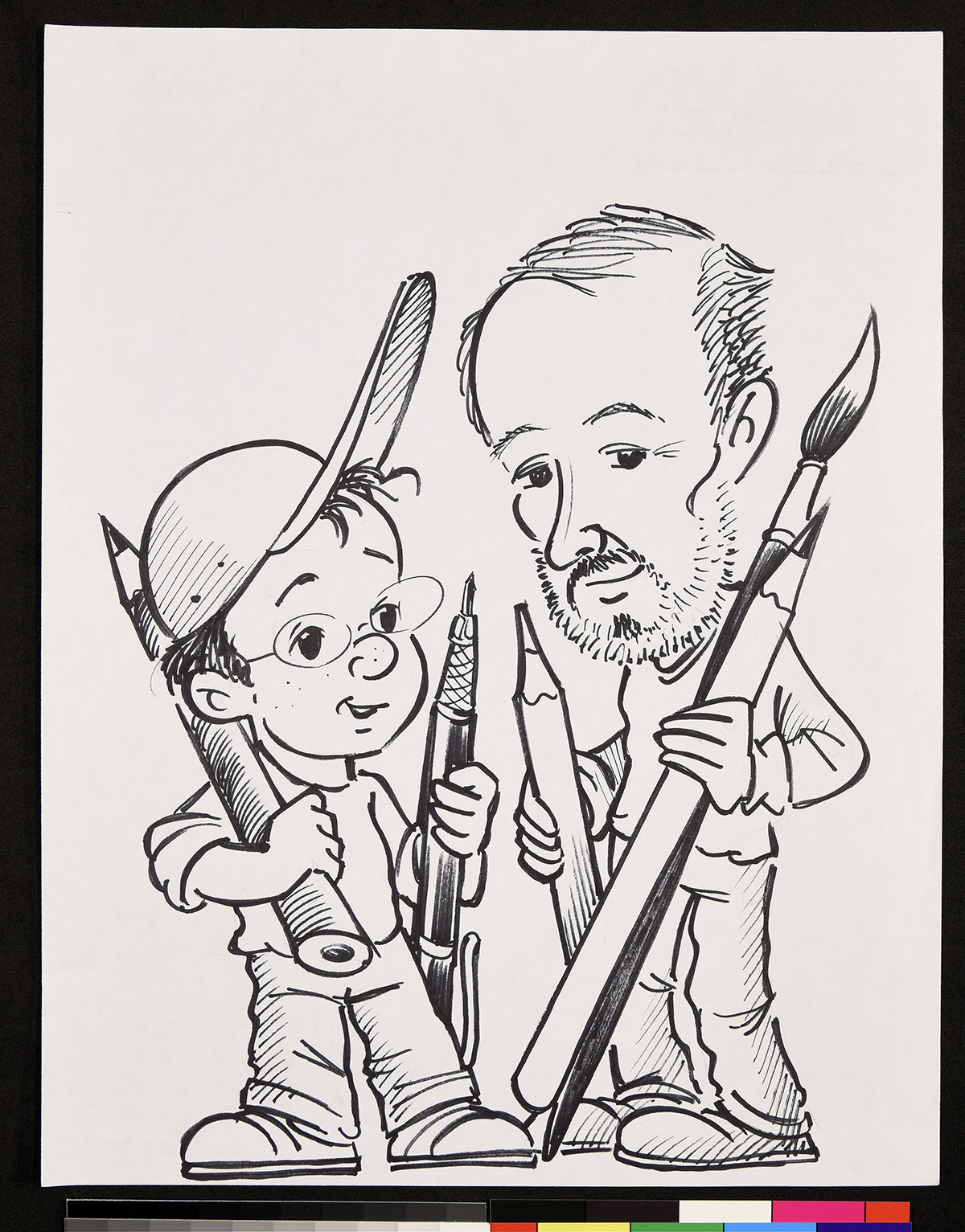 DIbujo de un hombre y una mujer conversando frente a frente. El hombre lee un periódico que sostiene con sus manos.