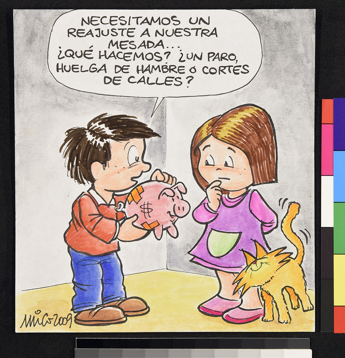 Dibujo de un niño escolar llora mientras es arrastrado de la mano por una mujer que lleva la mochila del muchacho.