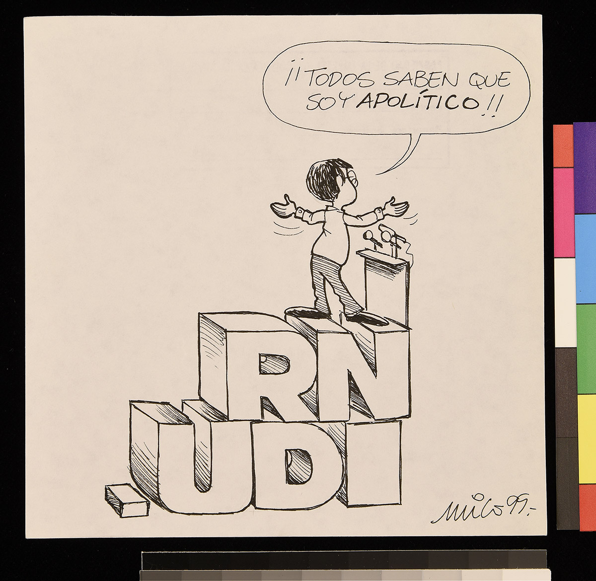 Dibujo de dos manos que sostienen un telegrama que dice “Tokio.19.nov. Este clima me hace bien para la salud. Me quedo. Alberto.”.