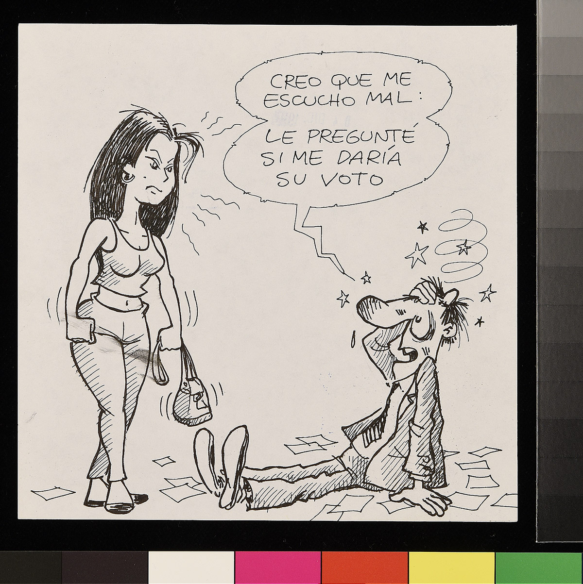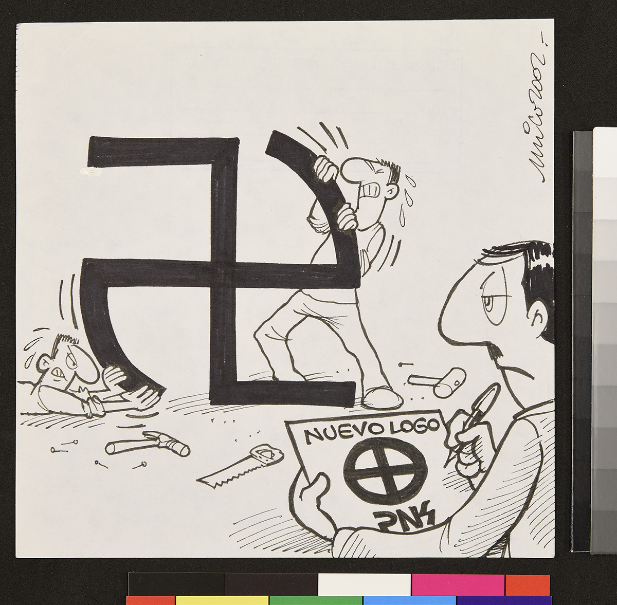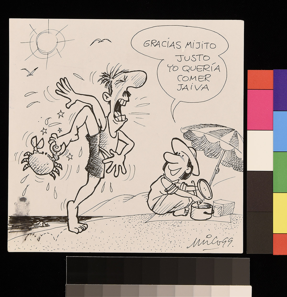 Dibujo de dos hombres que arrastran carritos de madera con botellas o papel .