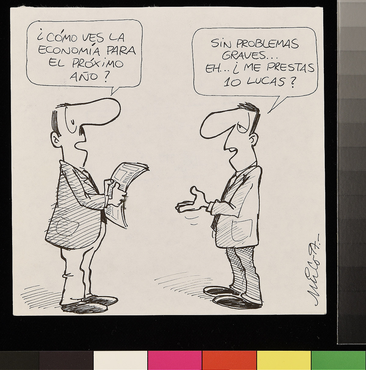 Dibujo de varios niños dentro de una sala de clases, donde uno levanta su mano izquierda mientras conversa con su compañera que está en el banco que está a su lado.