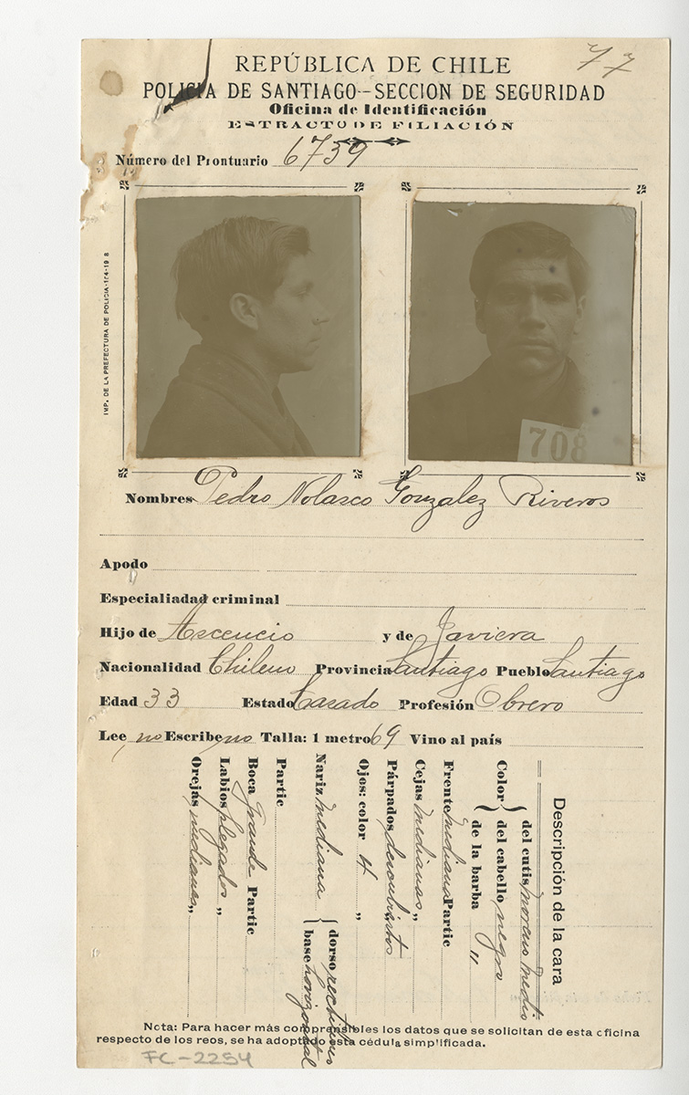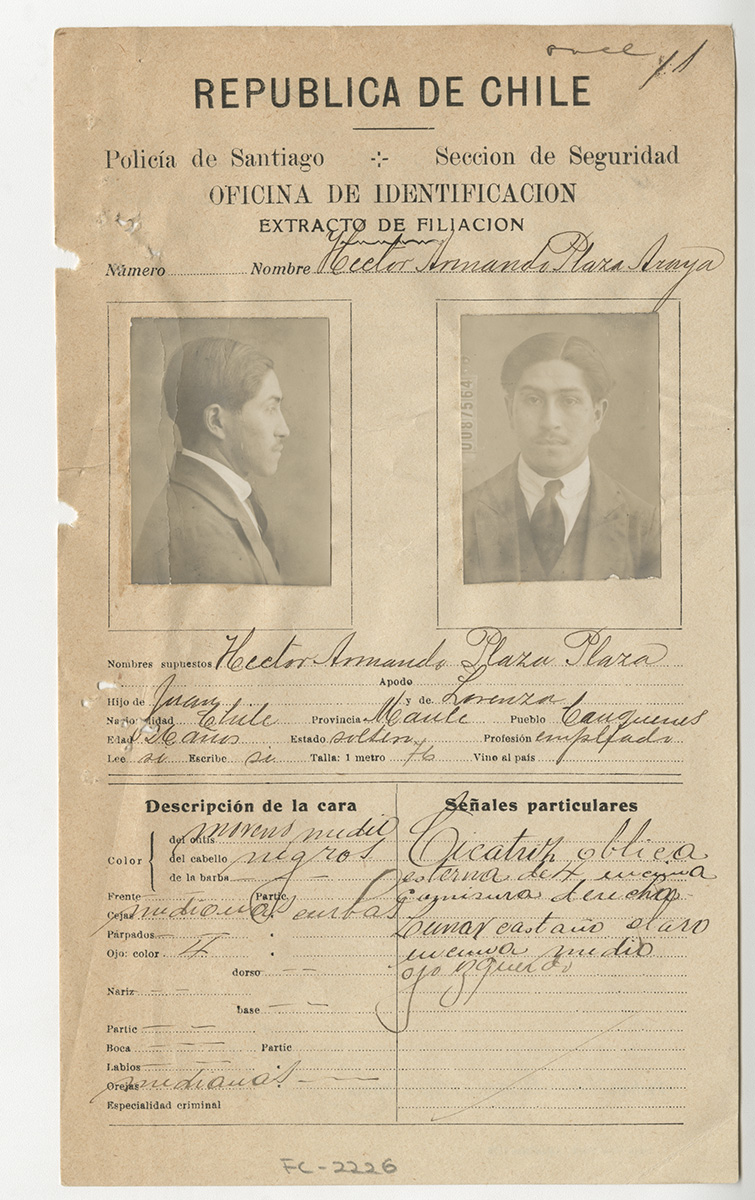 Documento donde figuran los antecedentes policiales y penales del imputado, detenido por estafa.