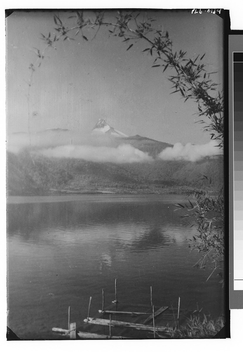 Vista caudaloso Rio, un puente de madera lo cruza en la parte más angosta.