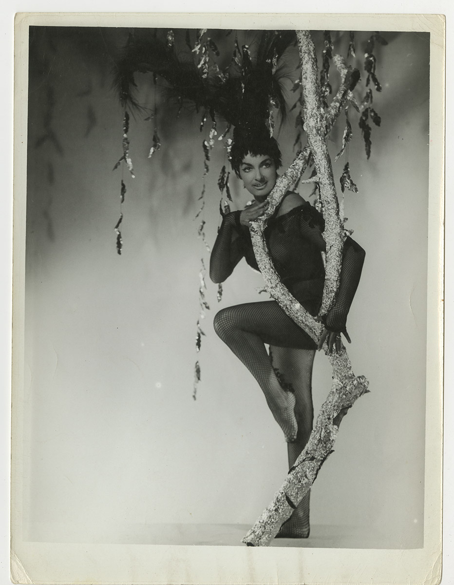 Seis artistas con vestido largo se encuentran actuando sobre un escenario.
