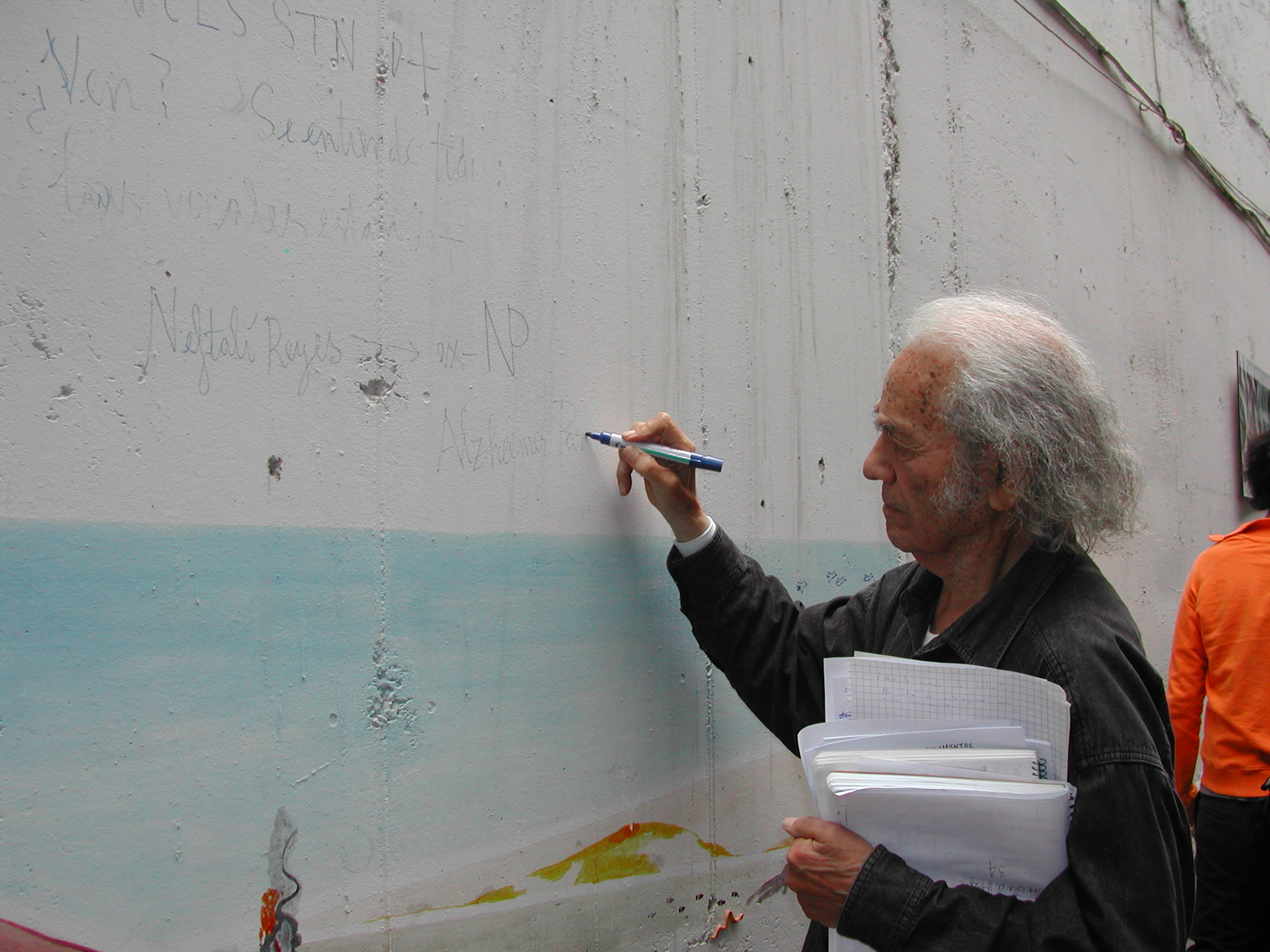 Vista de una estación de tren con galpones y una línea de árboles al costado.