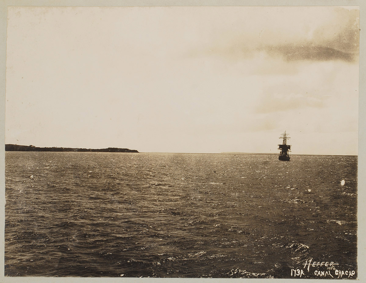 Velero sobre el mar. A la izquierda se ve un banco de tierra.