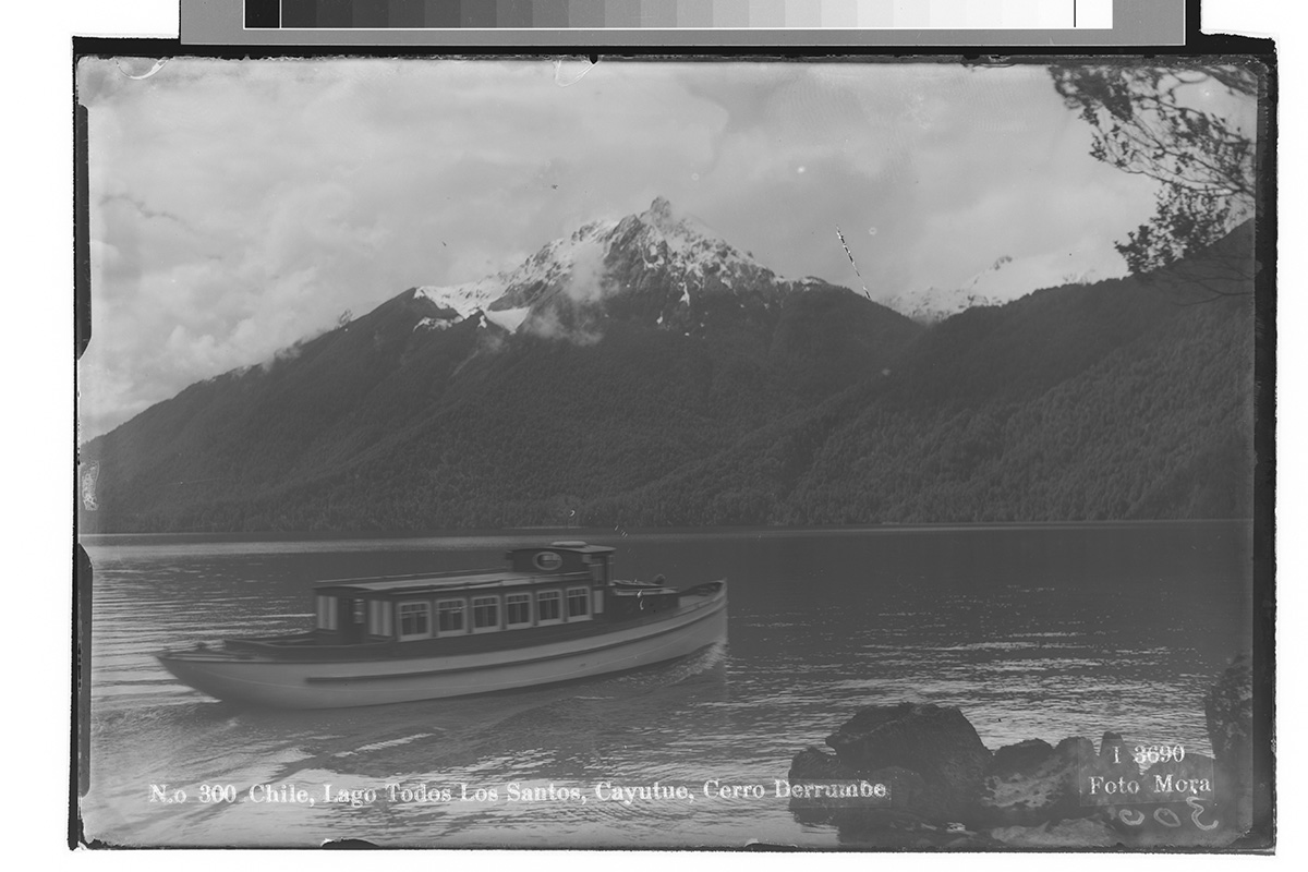 Vista de la orilla de un Rio, donde se aprecian varios Árboles medianos, que se reflejan en el agua, esparcidos en un terreno plano de pasto. De fondo, un cordón montañoso.
