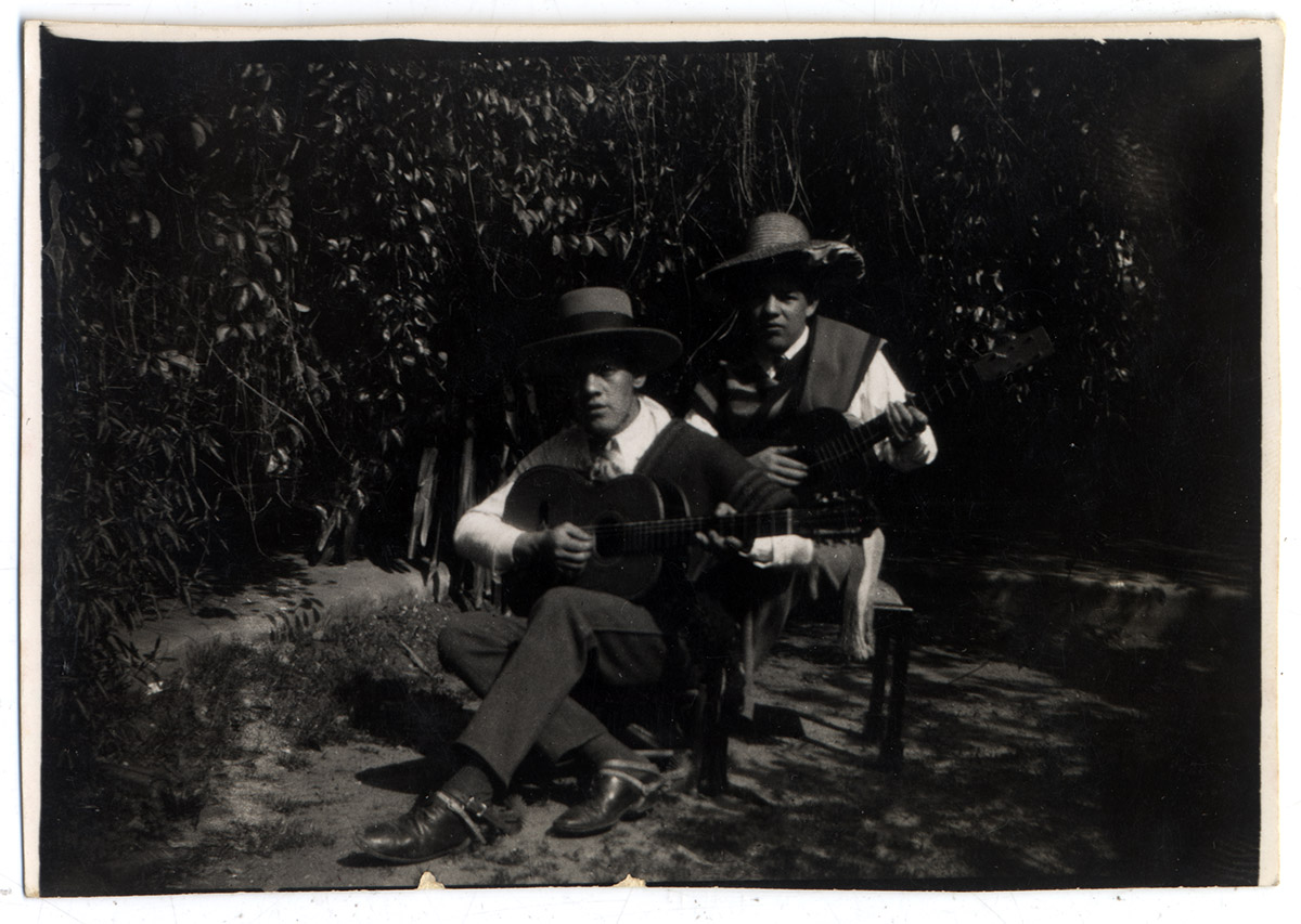En el primer plano, ramas y piedras en la orilla de un lago. De fondo, varios cerros cubiertos de vegetación y de fondo un volcán con nieve.