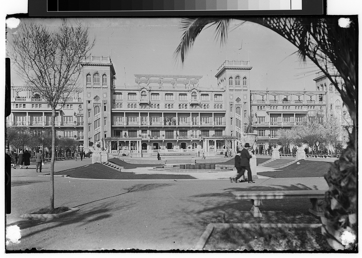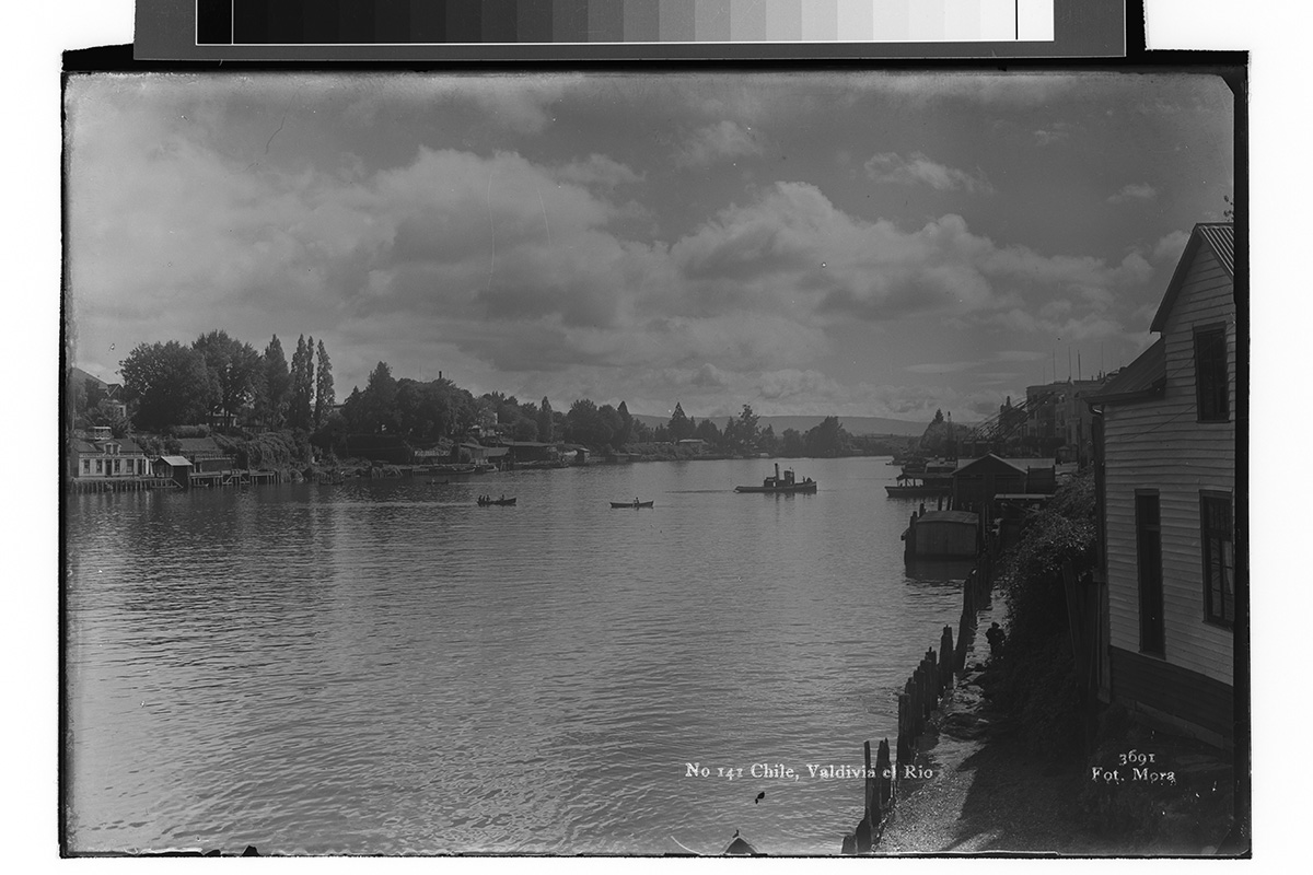 Varias rocas sobresalen del agua de un lago. De fondo varias construcciones junto a la orilla, rodeado de cerros con vegetación.