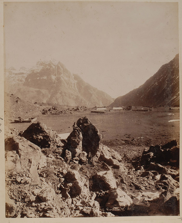 Vista desde la orilla de un lago, con un volcán de fondo.