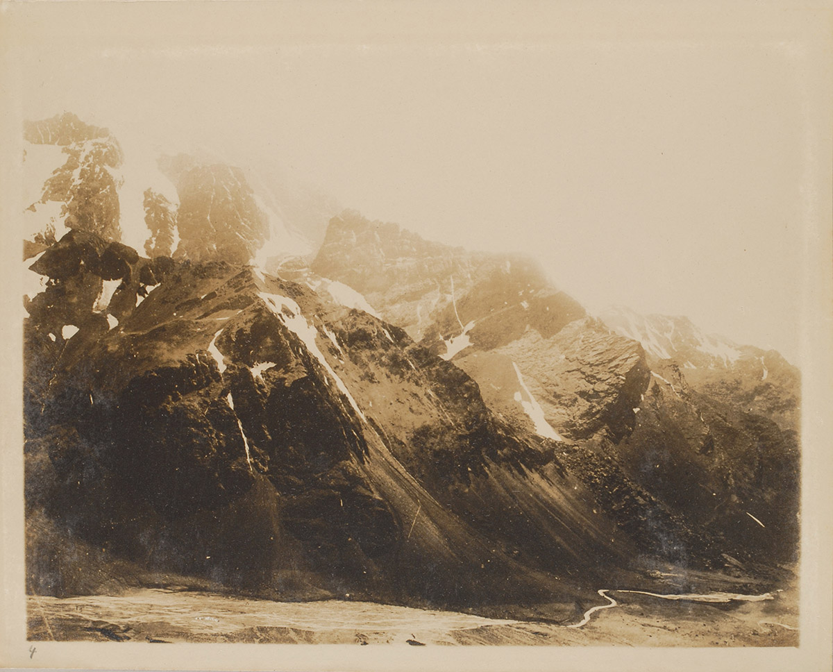 Vista de botes a la orilla del lago, de fondo vegetación y un volcán aparentemente activo.
