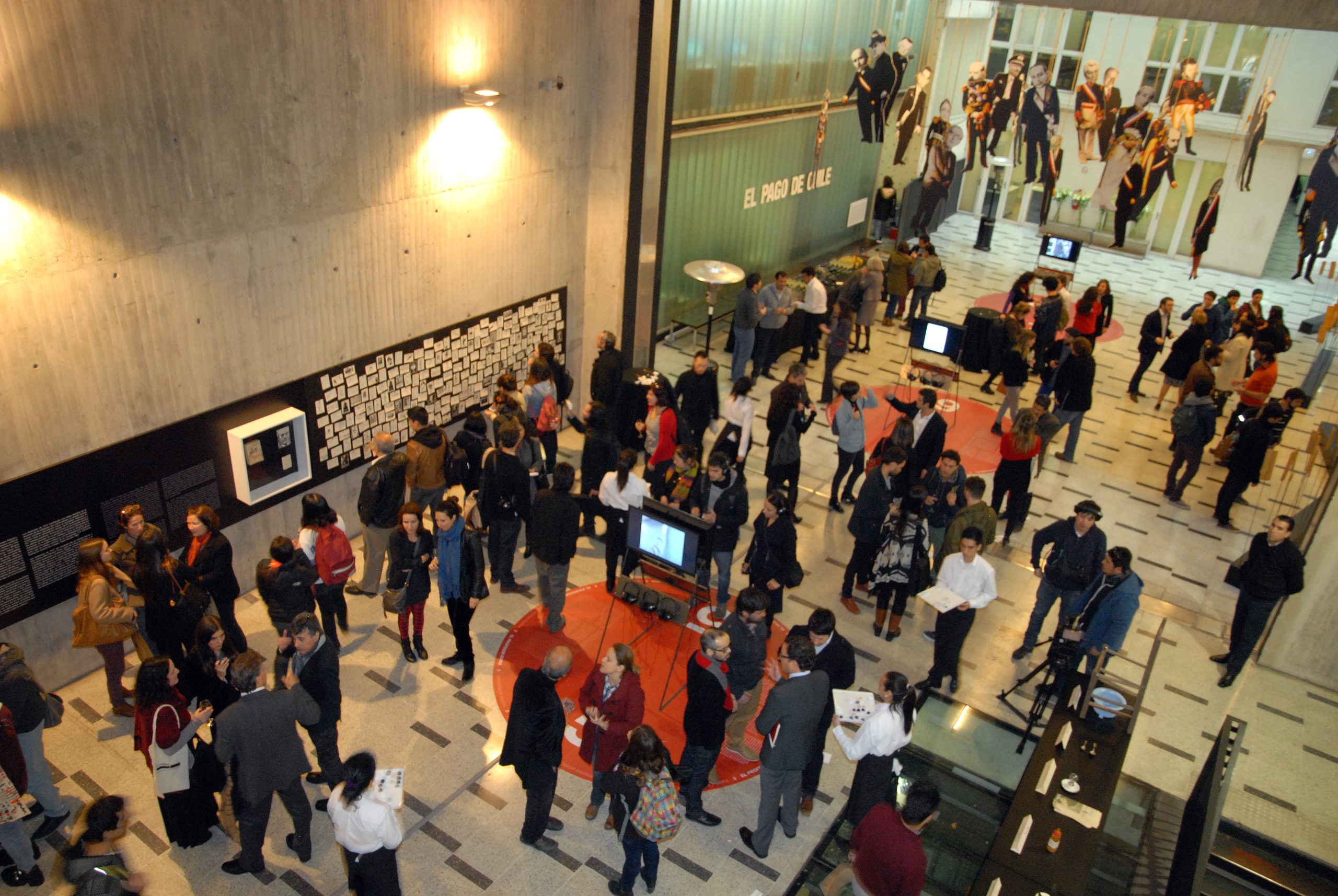 Vista de la proa de un barco con pasajeros en cubierta, navegando por una laguna donde flotan peñascos de hielo y rodeado de glaciares.