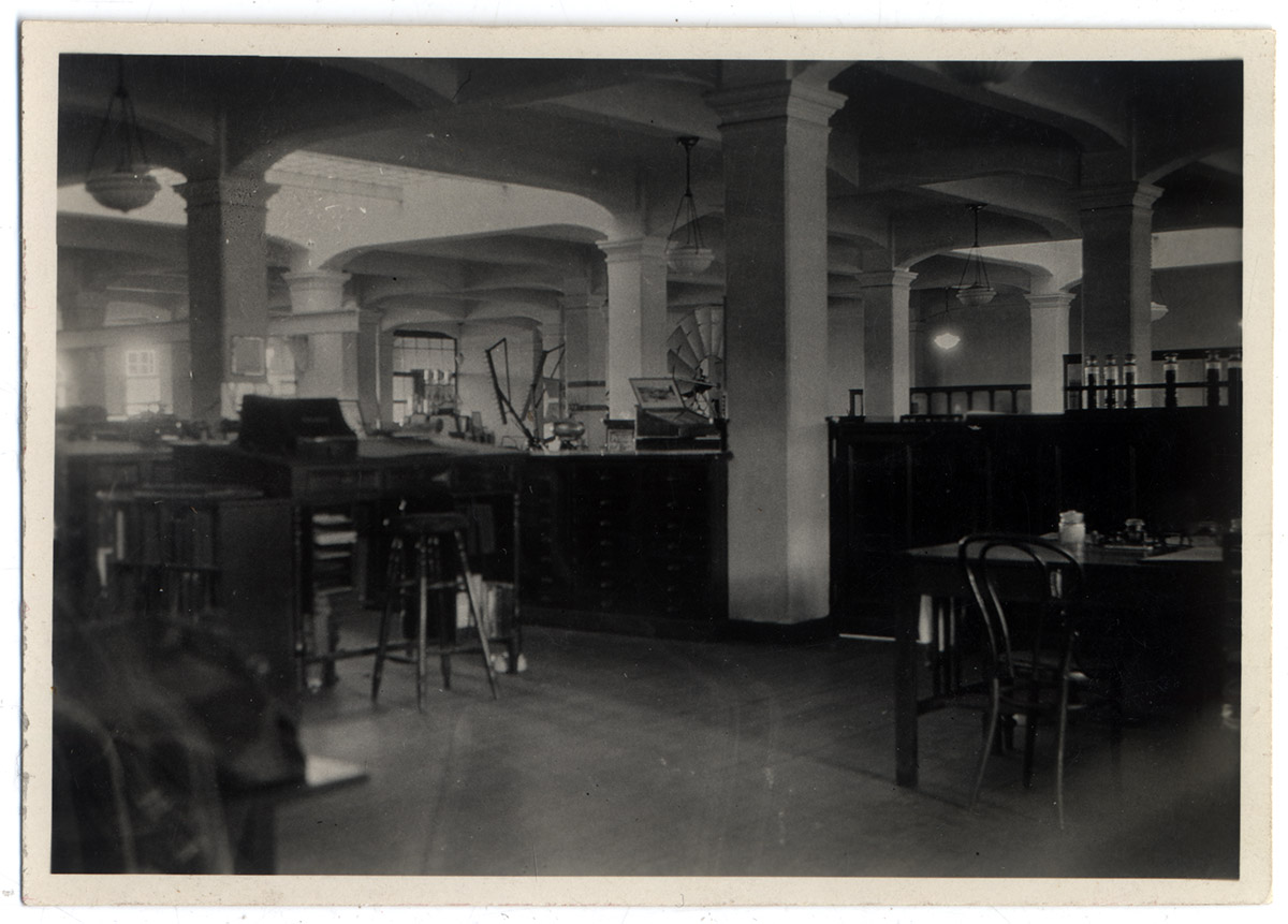 Vista de la esquina de una plaza con calles de tierra. Al costado izquierdo de la fotografía se encuentran varios edificios de madera donde destaca una iglesia con su campanario. De fondo altas montañas cubiertas con vegetación y otras con nieve.