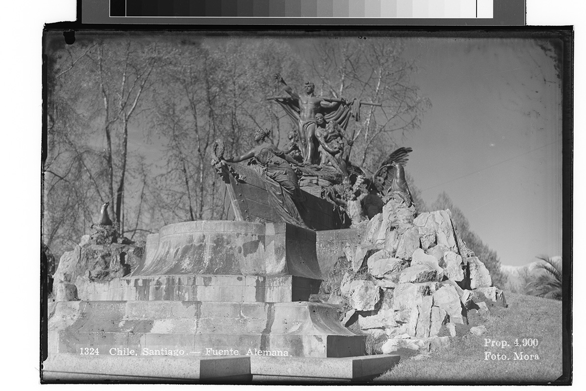 Vista de una ciudad de edificios de altura mediana y madera. Al costado derecho se puede ver la costa y el mar. Al fondo un volcán con nieve.