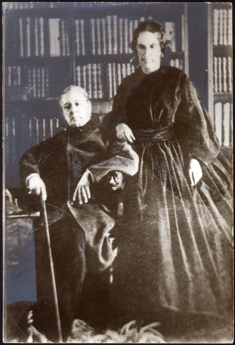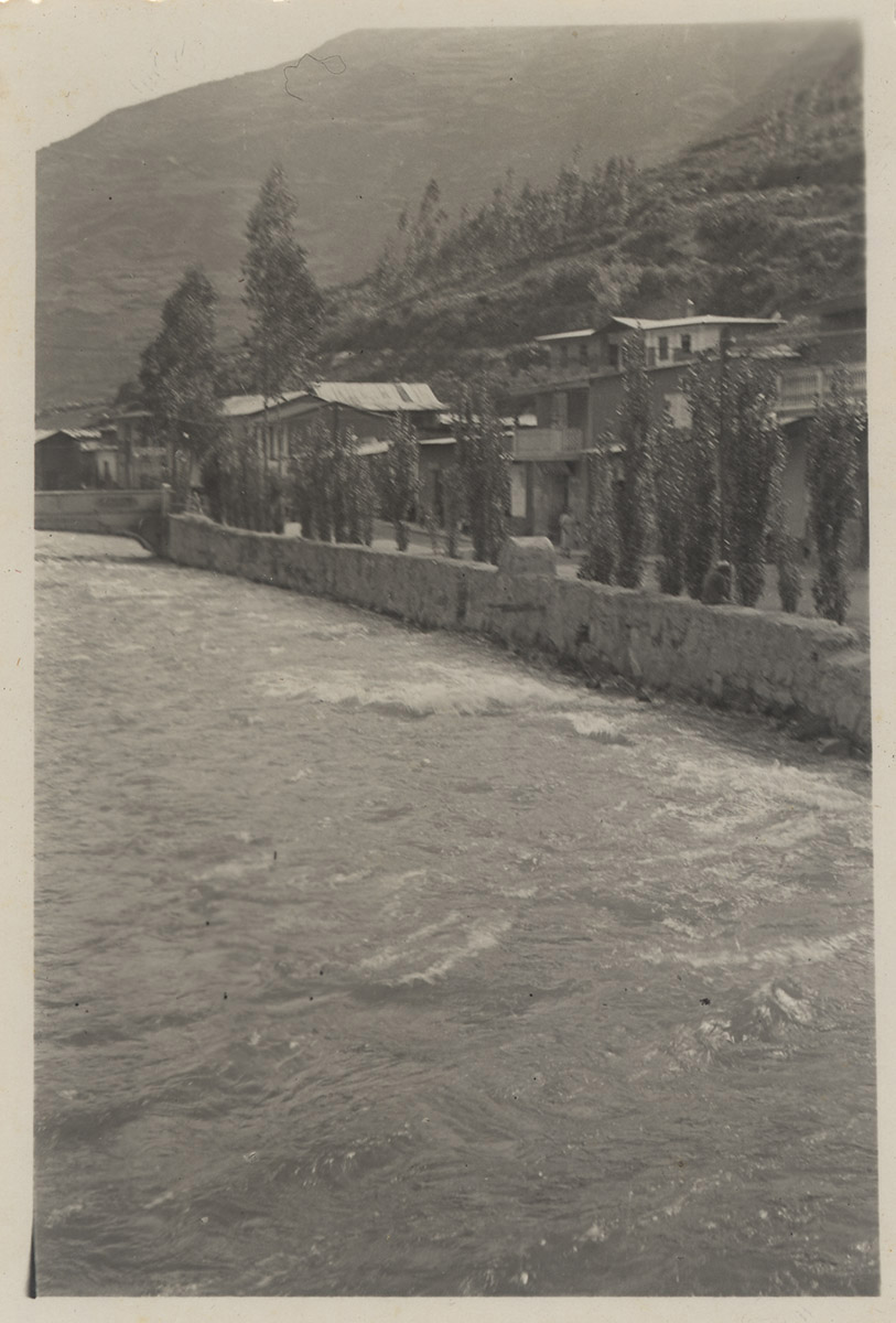 Parte de la fachada de un edificio de dos pisos, rodeado de jardines y caminos.