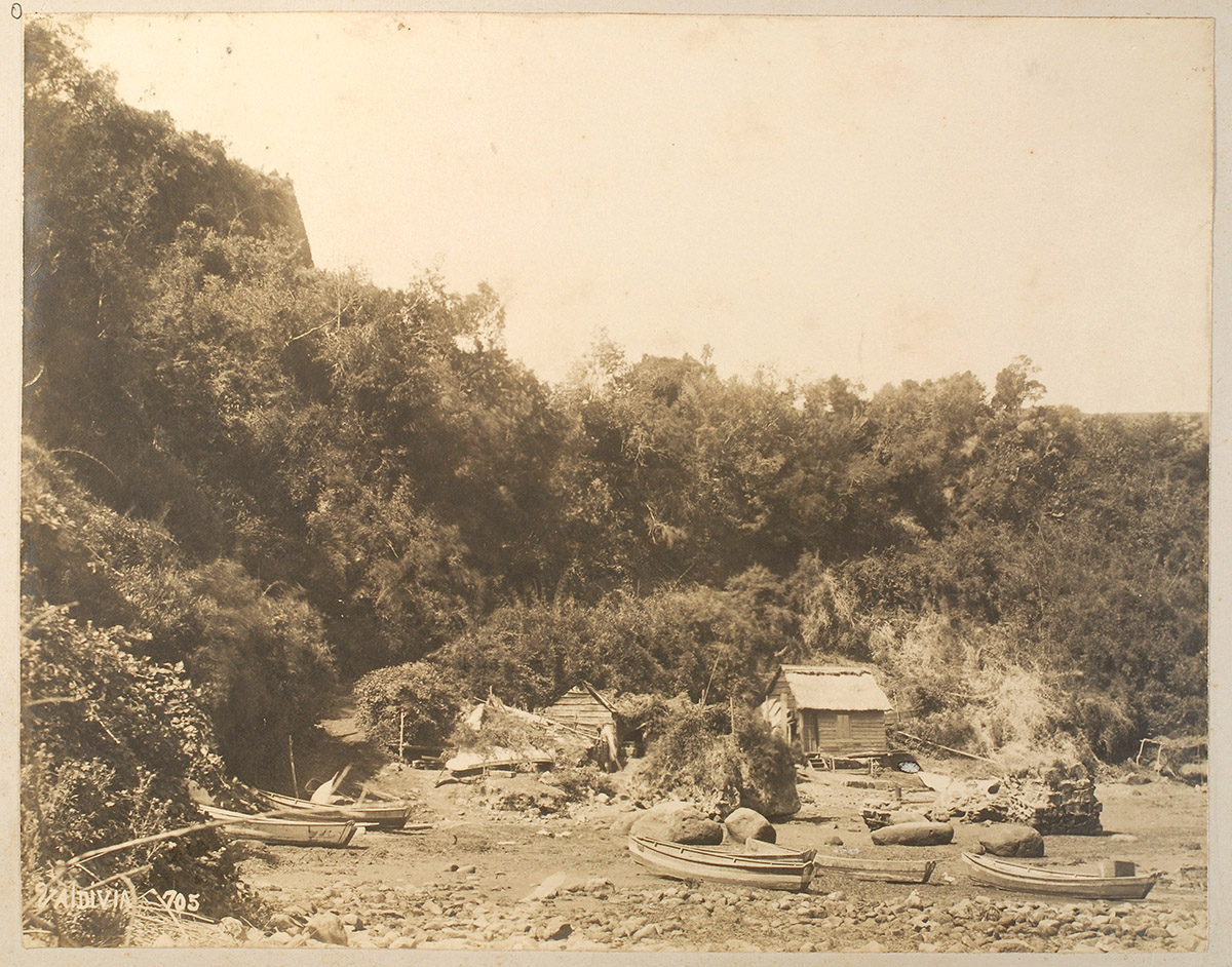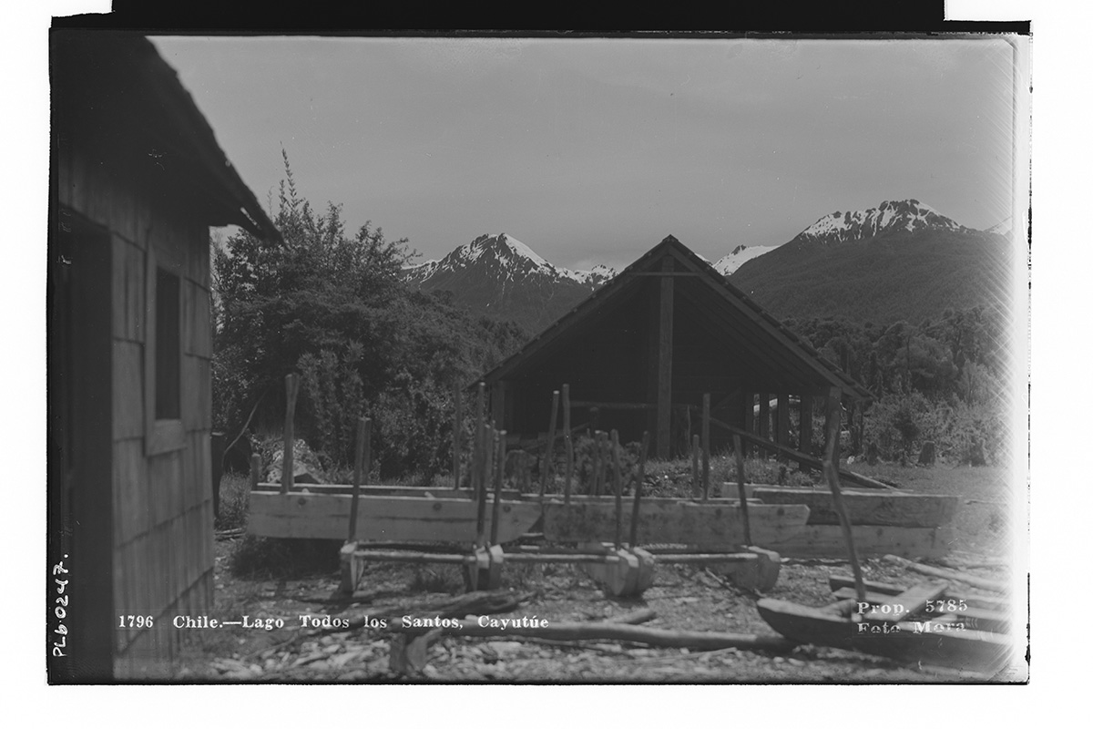 Vista de un lago, con una playa cubierta de rocas y cerros con Vegetación alrededor.