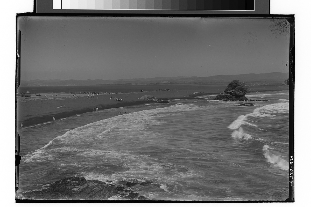 Vista en altura de una ciudad con algunas de sus calles, junto a la costa.