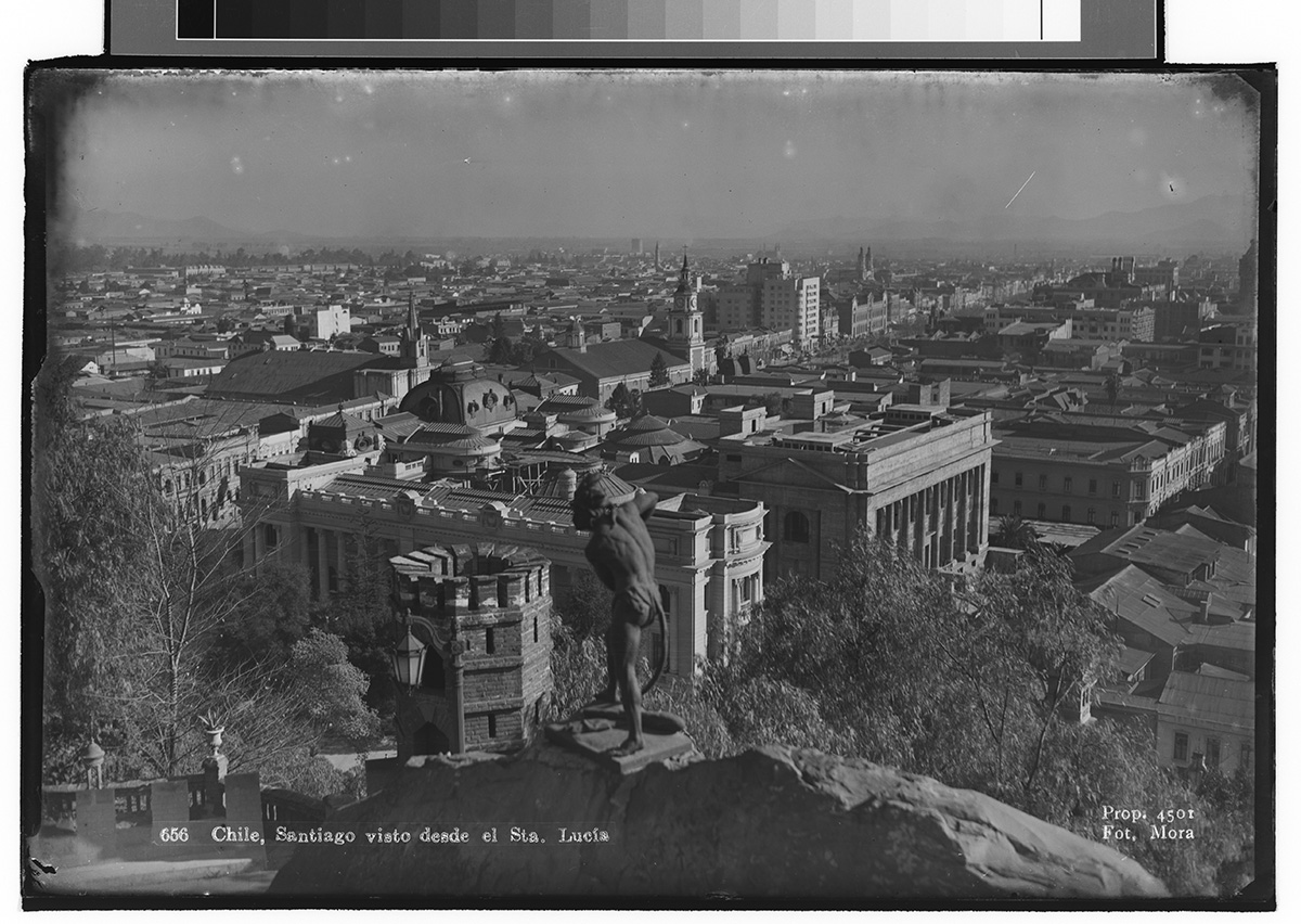 Vista de una avenida con varios árboles y paseo peatonal en el bandejón central. Al costado derecho de la fotografía, varios edificios de distintos diseños y alturas. De fondo, Panorámica de la ciudad.
