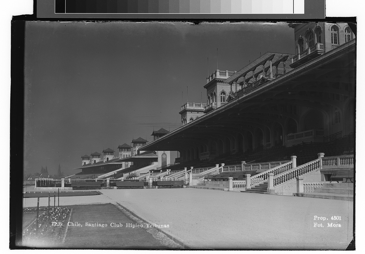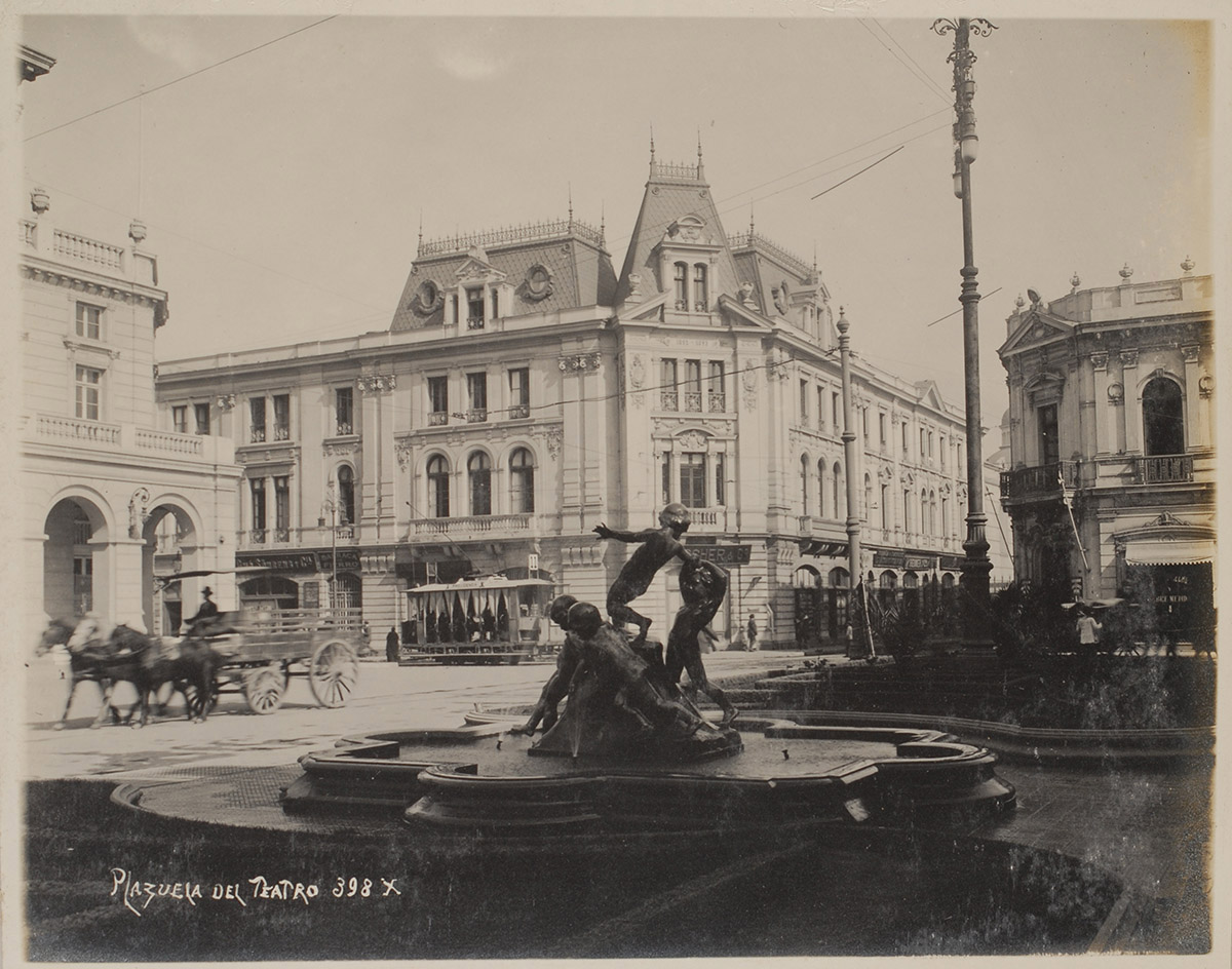 Vista de grupo masivo de personas en una plaza, cerca de una avenida. Estos dos grupos dejan una avenida entre medio. De fondo se divisa conjunto de edificios y una cruz blanca de gran tamaño que sobrepasa al grupo de personas.