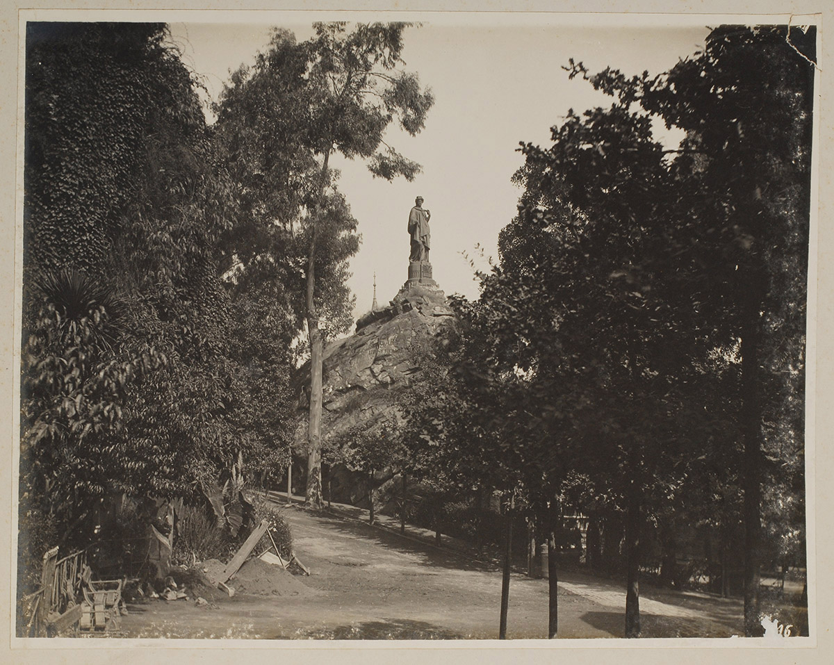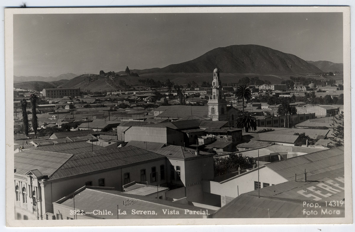 Vista Panorámica de una plaza grande que en el centro tiene una pileta de agua redonda. está plaza está rodeada de un conjunto de edificios, entre los que se destaca la vista parcial del Palacio de la Moneda.