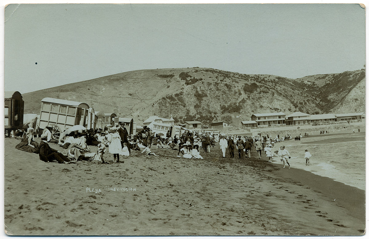Vista Panorámica de un sector urbano, donde en el primer plano se encuentra una rotonda con varios accesos y jardines. Se encuentra junto a un Rio que cruza la ciudad. De fondo, un cordón montañoso nevado.