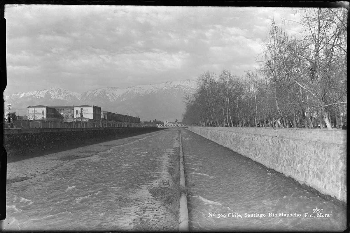 Paisaje urbano de un puente y edificios. El puente se refleja sobre el agua que se encuentra a su lado.